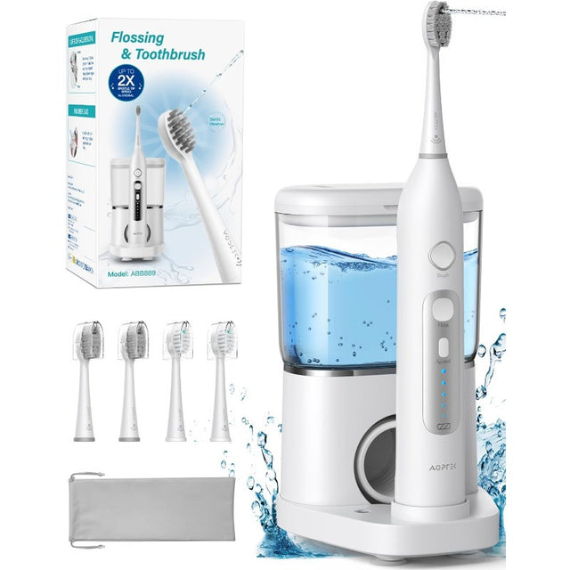AGPTEK Professional Flossing Toothbrush, Electric Toothbrush with Water Flosser Combo, 5 Modes Teeth Cleaner, 5 Water Pressure Oral Irrigator, 16.91oz Water Tank for Home, Portable Tube for Travel - White electric toothbrush + water flosser combination is backordered and will ship as soon as it is back in stock.