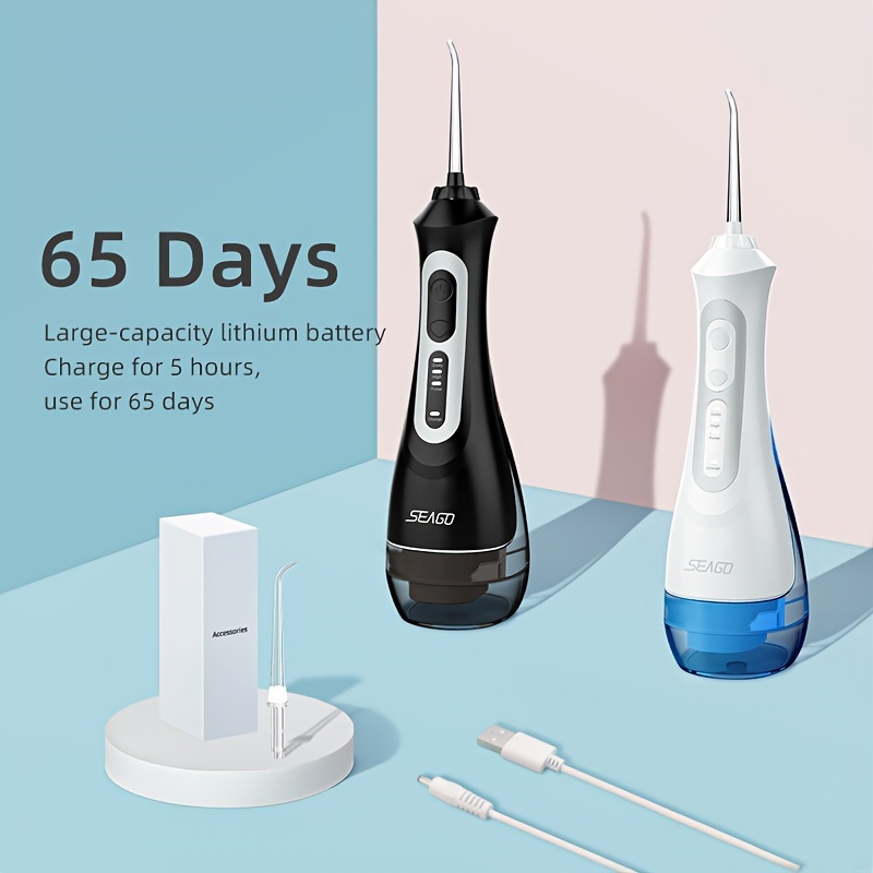 Seago Water Flosser with Rechargeable Electric Toothbrush Adults Sonic Tooth Brush 8 Pieces Brush Heads Oral Dental Irrigator 5 Nozzle Tips White Black Home Gift