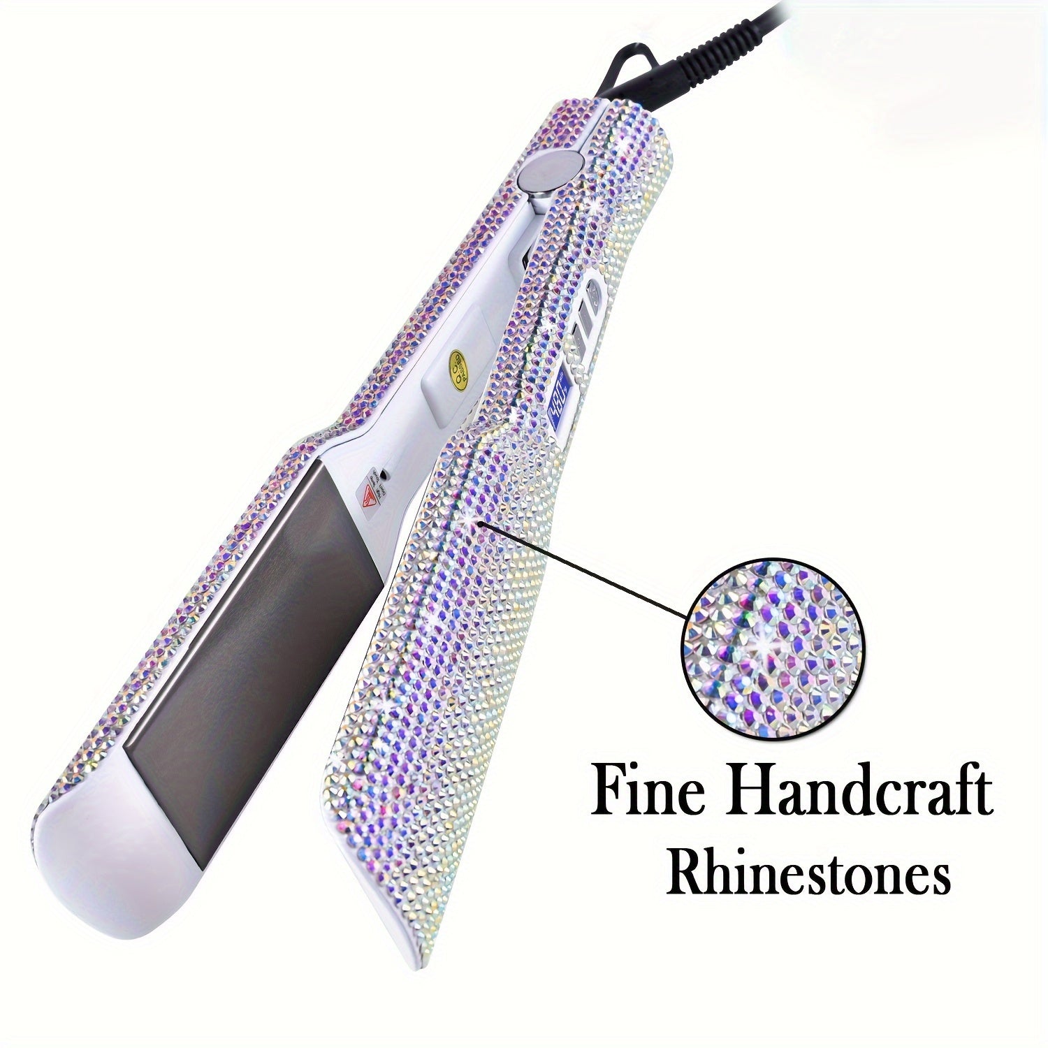 Hair Straightener, Crystal Rhinestone Decor Professional Hair Straightener Flat Iron, 1.7 Inch Titanium Flat Iron Straightening Iron, High Heat 480 °F, Bling Titanium Hair Flat Iron