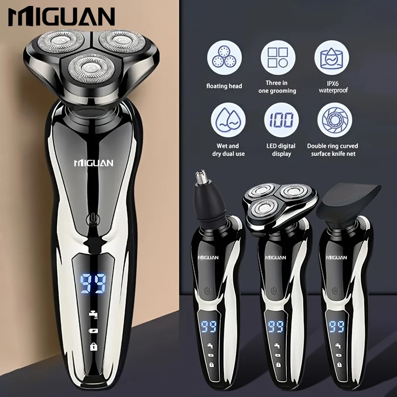 Electric Razor For Men, 3 In 1 Electric Shaver Nose Hair Trimmer USBRechargeable Portable Razor 3D Floating Blade Digital