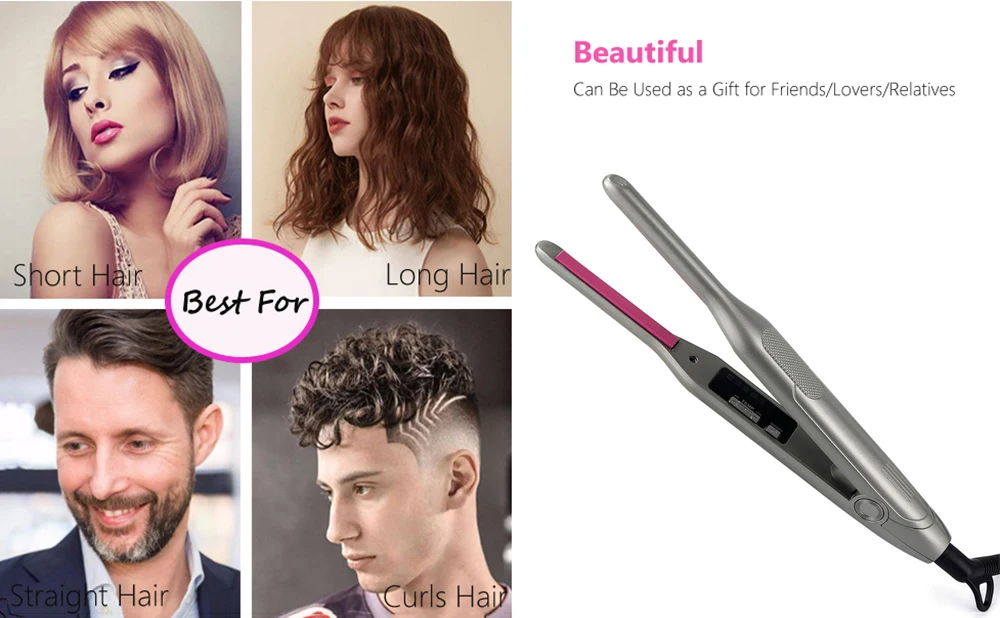 Hair Straightener Curler Professional Ceramic Coating Thinnest Plate Pencil Flat Irons For Short Hair Men's Beard Stylling Tool