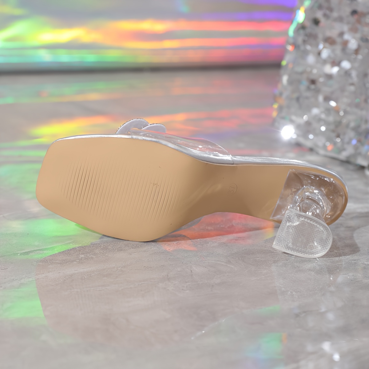 Crystal High Heel Rhinestone Sandals for Women, Crystal High Heels for Women with Rhinestone Transparent Thick Heels, Women's Summer Metallic Square Head High Heels, Women's Rhinestone High Heels, Fashionable Square Toe Sanda - 【silvery】 / US 5.5 is backordered and will ship as soon as it is back in stock.