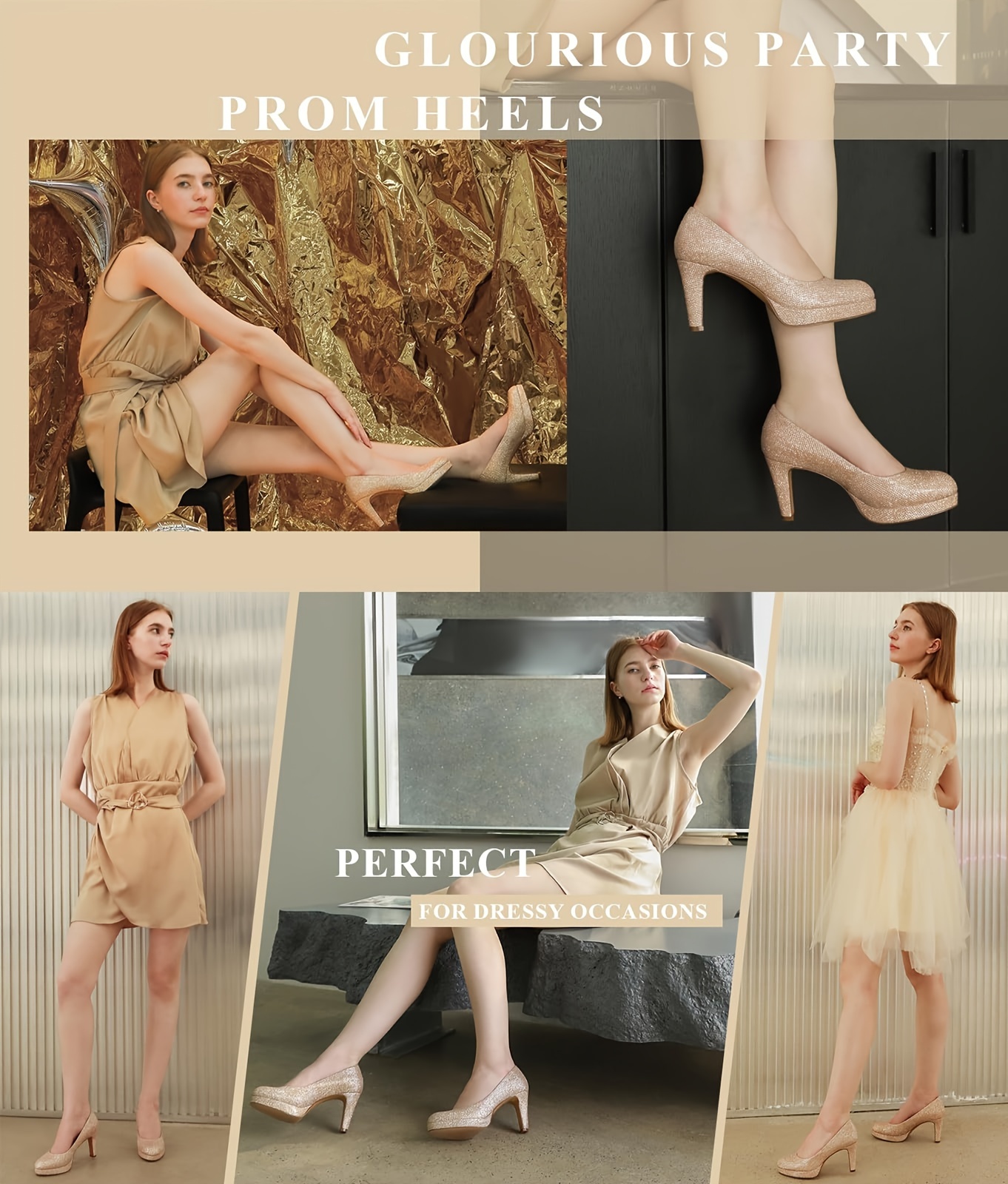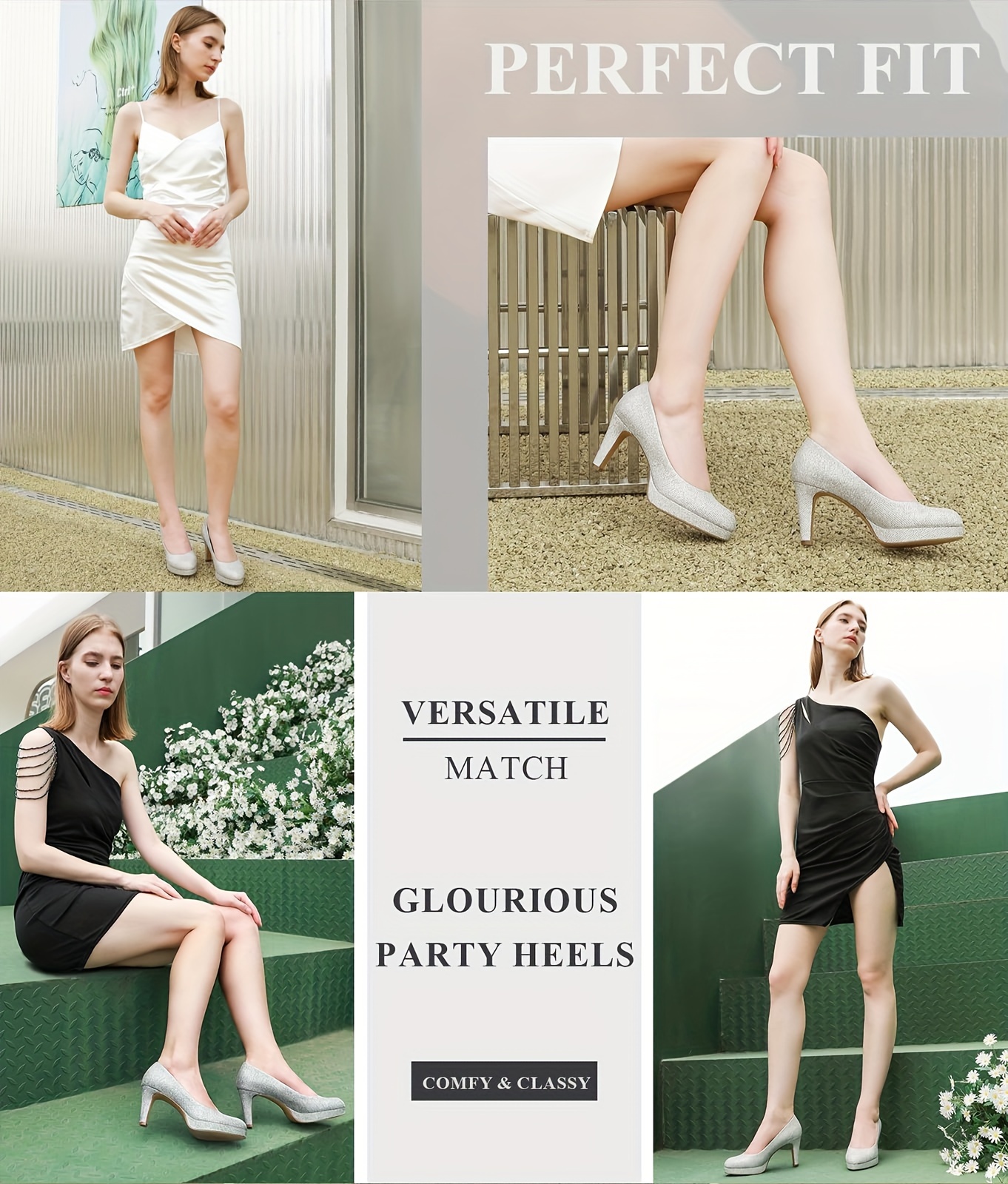 Women's Pumps - Womens Comfy Close Toe Heels - 3.15in Black Dress Shoes for Women - Comfortable Work Heels for Women - Black Heels, Nude Heels, White Heels, Golden Heels, Silver Heels for Women