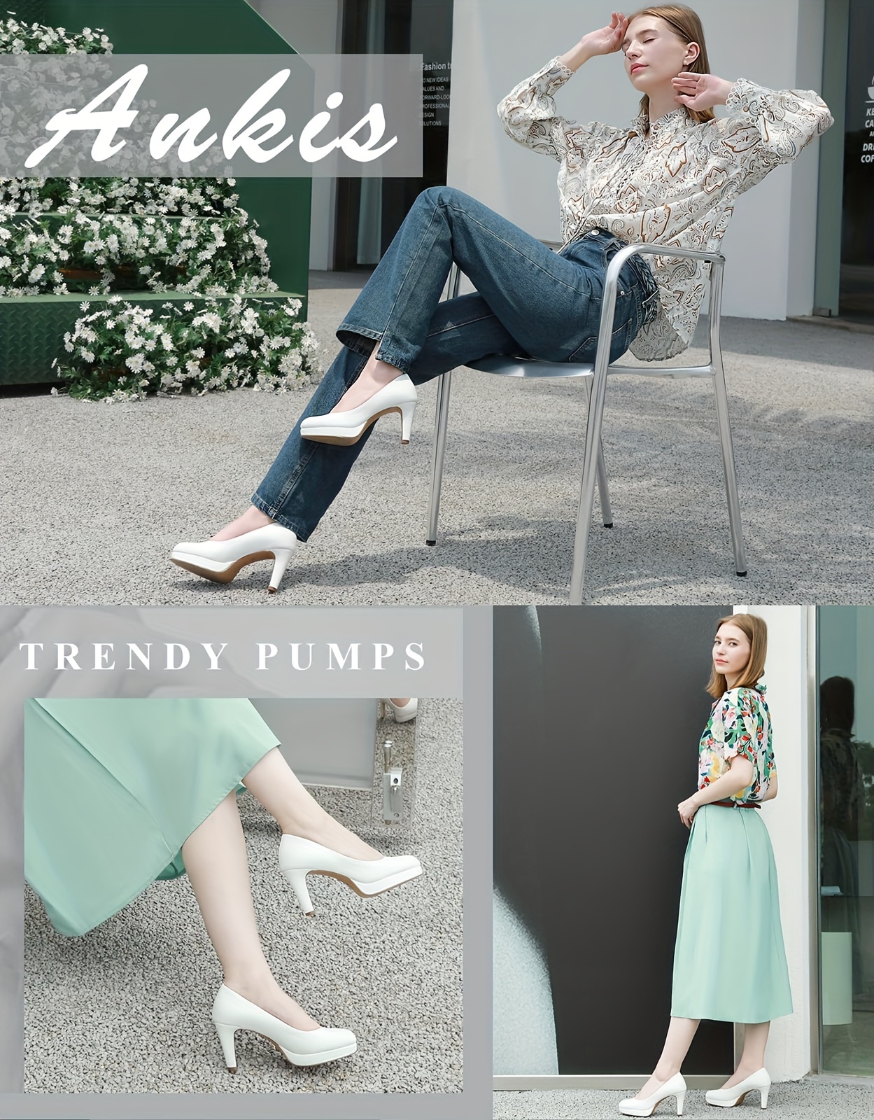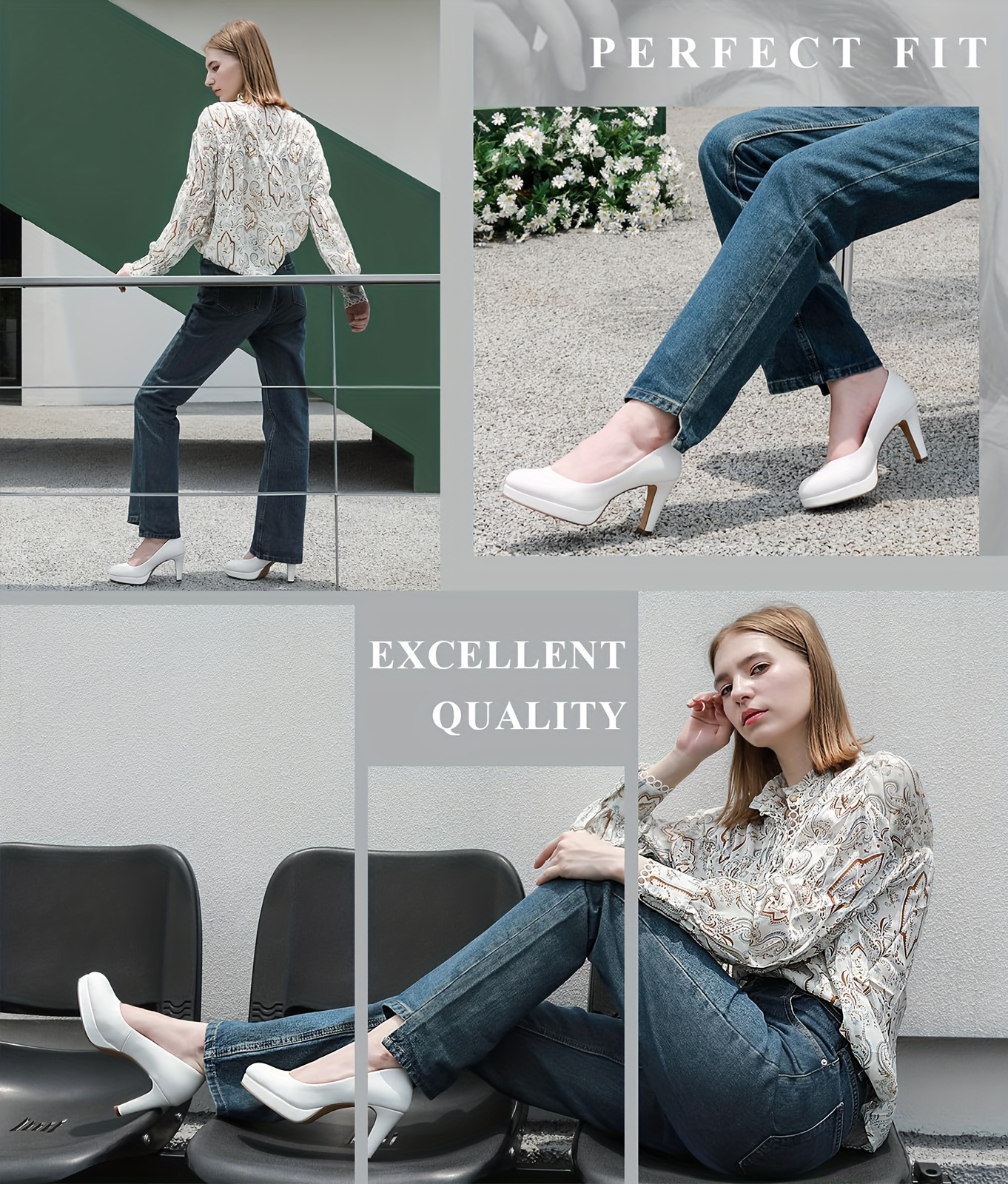 Women's Pumps - Womens Comfy Close Toe Heels - 3.15in Black Dress Shoes for Women - Comfortable Work Heels for Women - Black Heels, Nude Heels, White Heels, Golden Heels, Silver Heels for Women - White Pu / US 6 is backordered and will ship as soon as it is back in stock.