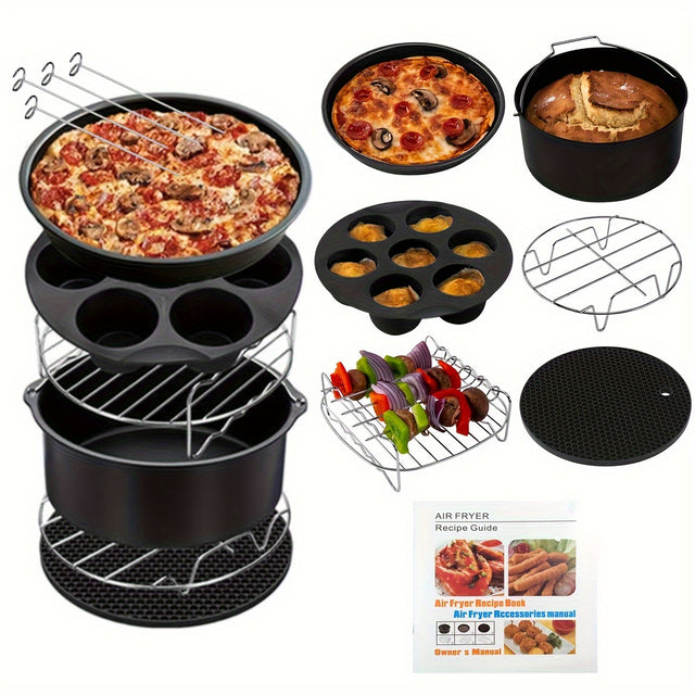 11pcs/set 8 Inch Air Fryer Accessories, Compatible Fits For Universal 3.7QT - 6.8QT Deep Air Fryer, BPA Free, Dishwasher Safe, Nonstick Coating, With Recipes Cookbook