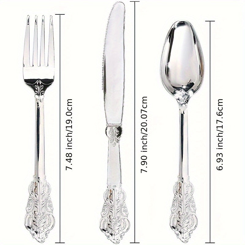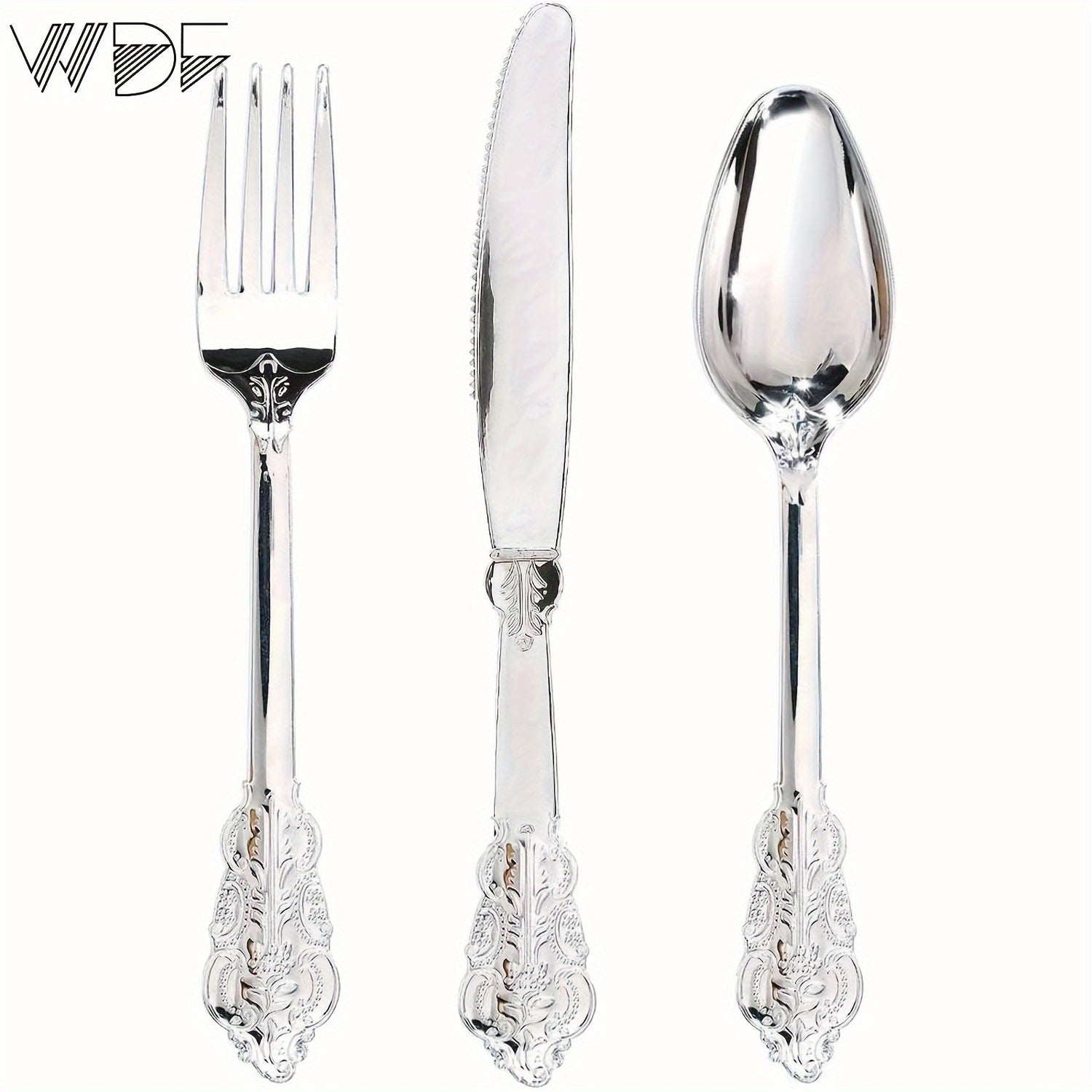 120 Forks, 120 Spoons, 120 Knives - 360 Pieces Heavyweight Silver Plastic Disposable Flatware Silverware