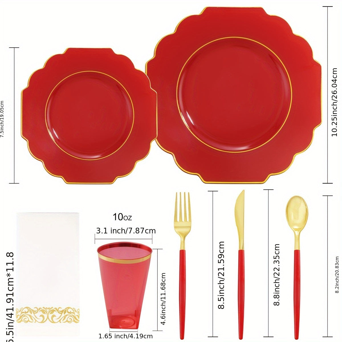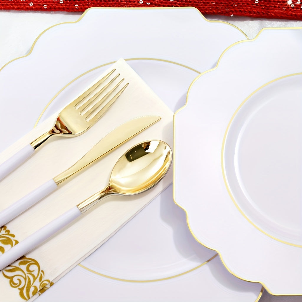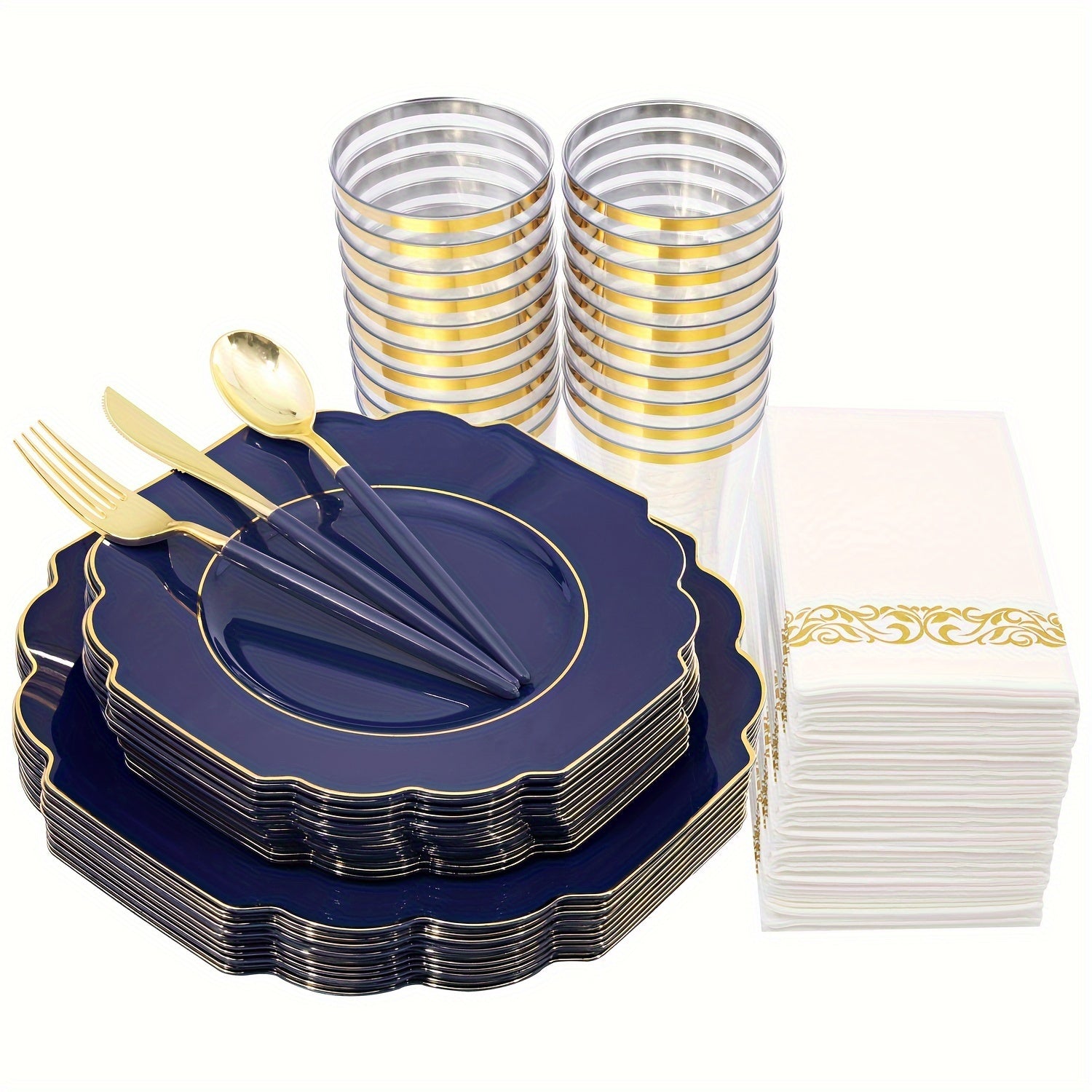 140PCS Plastic Plates - Gold Plastic Silverware, Gold Disposable Plates Include 40Plates, 20Cups, 20Forks, 20 Knives, 20Spoons, 20Napkins for Weddings & Parties