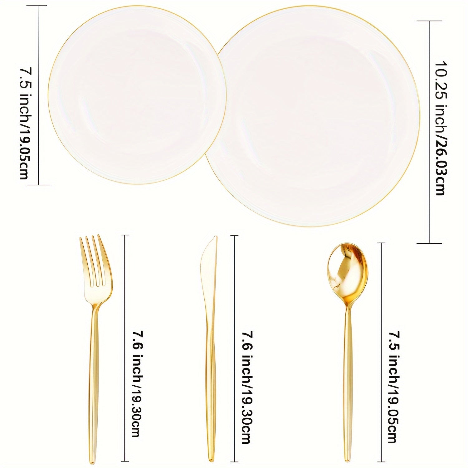 50pcs, Golden Plastic Silverware, Luxury Golden Plastic Cutlery, Heavy Weight Golden Plastic Flatware, Golden Utensils Set Disposable Include Golden Forks, Golden Spoons, Golden Knives For Party