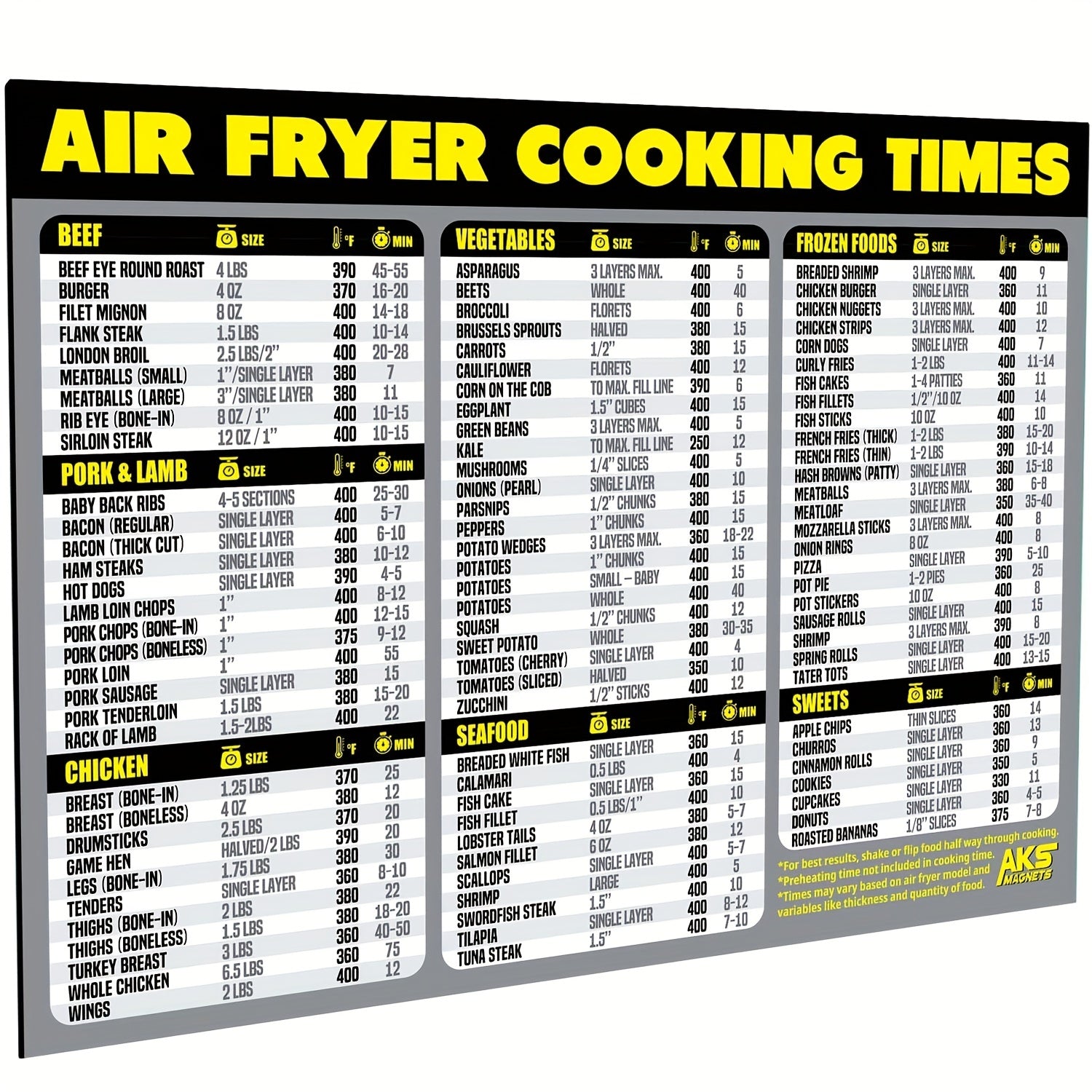 · Convenient: Extra large and easy to read air fryer cheat sheet magnets for quick reference while cooking.