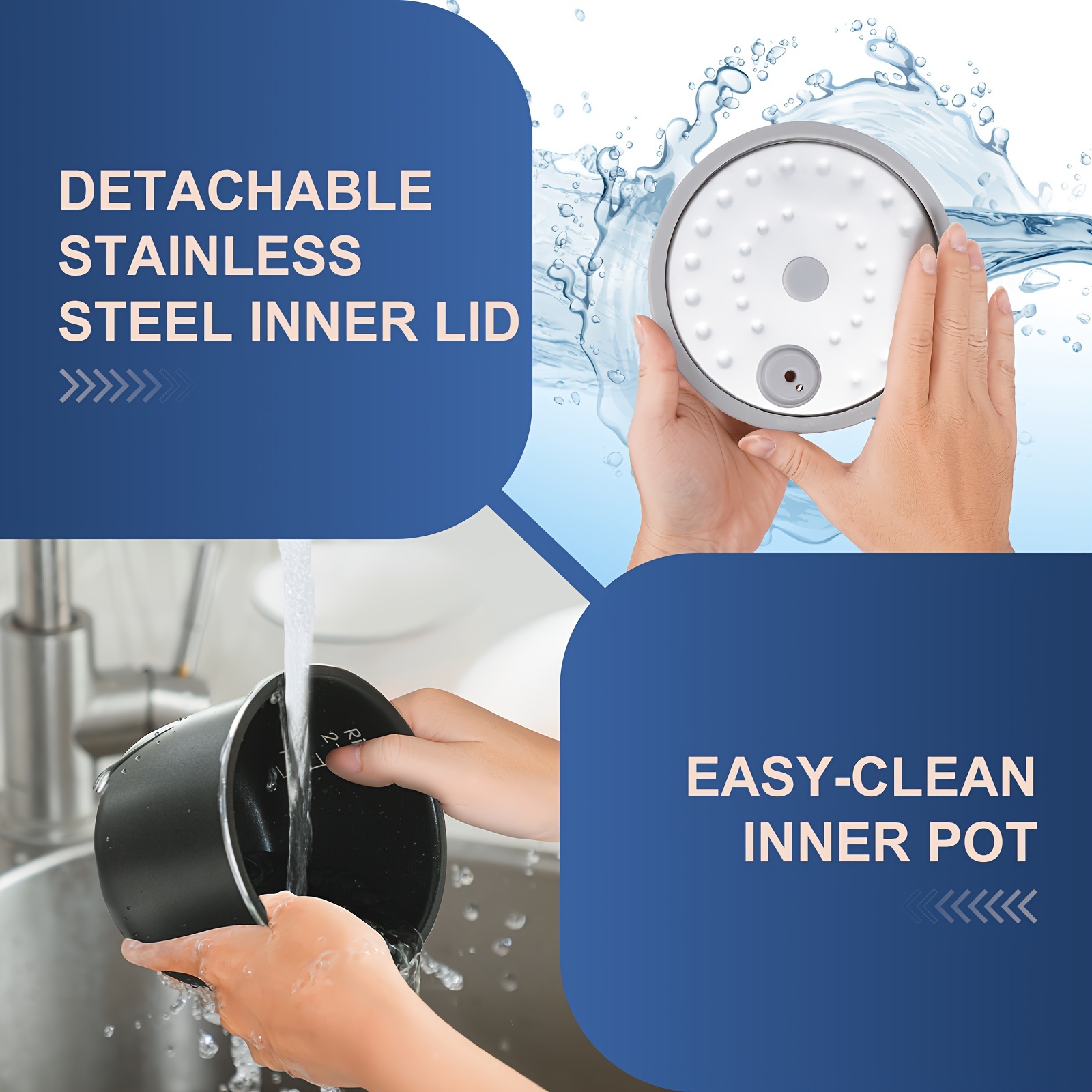 Bear Mini Rice Cooker 2 Cups Uncooked, 40.58oz Portable Non-Stick Small Travel Rice Cooker, BPA Free, One Button To Cook And Keep Warm Function, Blue