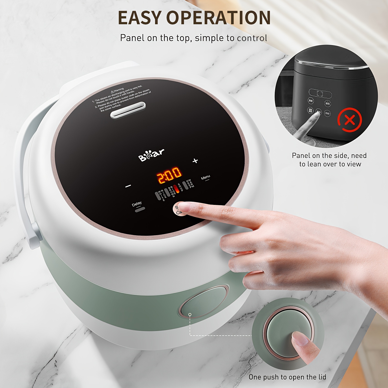 Bear Rice Cooker 3 Cups (Uncooked), 3D Heating And Fuzzy Logic, Healthy Nonstick Small Rice Cooker, PFAS-Free, Touch-Screen, For White/Brown Rice Quinoa Oatmeal Soup, 1.6L White