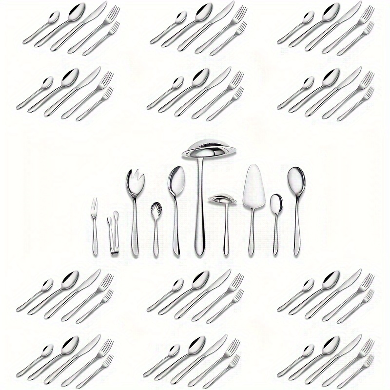 Elegant 72-Piece Silverware Set, Stainless Steel Flatware Set for 12 Guests - Comprehensive Cutlery and Serving Utensils Set, Dishwasher Safe - 72-PCS is backordered and will ship as soon as it is back in stock.