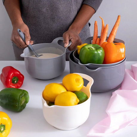 3Pcs Mixing Bowls Plastic Salad Serving Bowl Kitchen Fruits Vegetables Food Snacks Basins