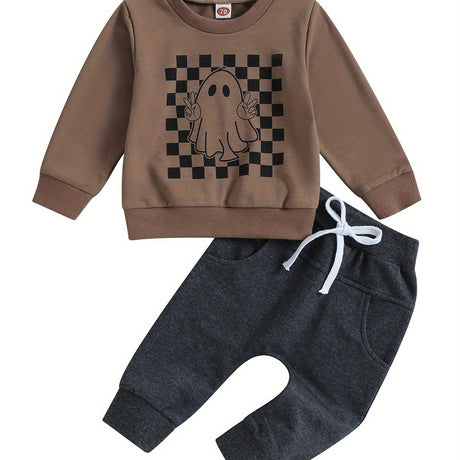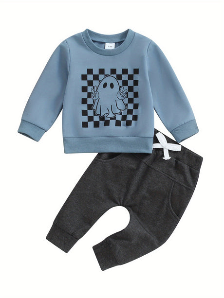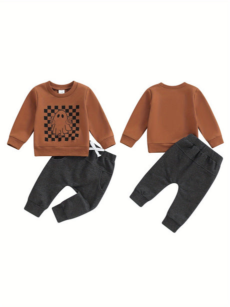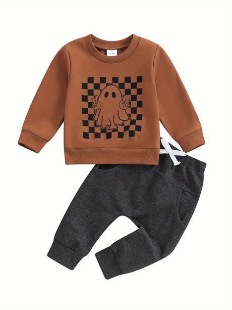 Toddler Boys Halloween Sets Long Sleeve Letter Pumpkin Print Tops Plaid Pants Sets