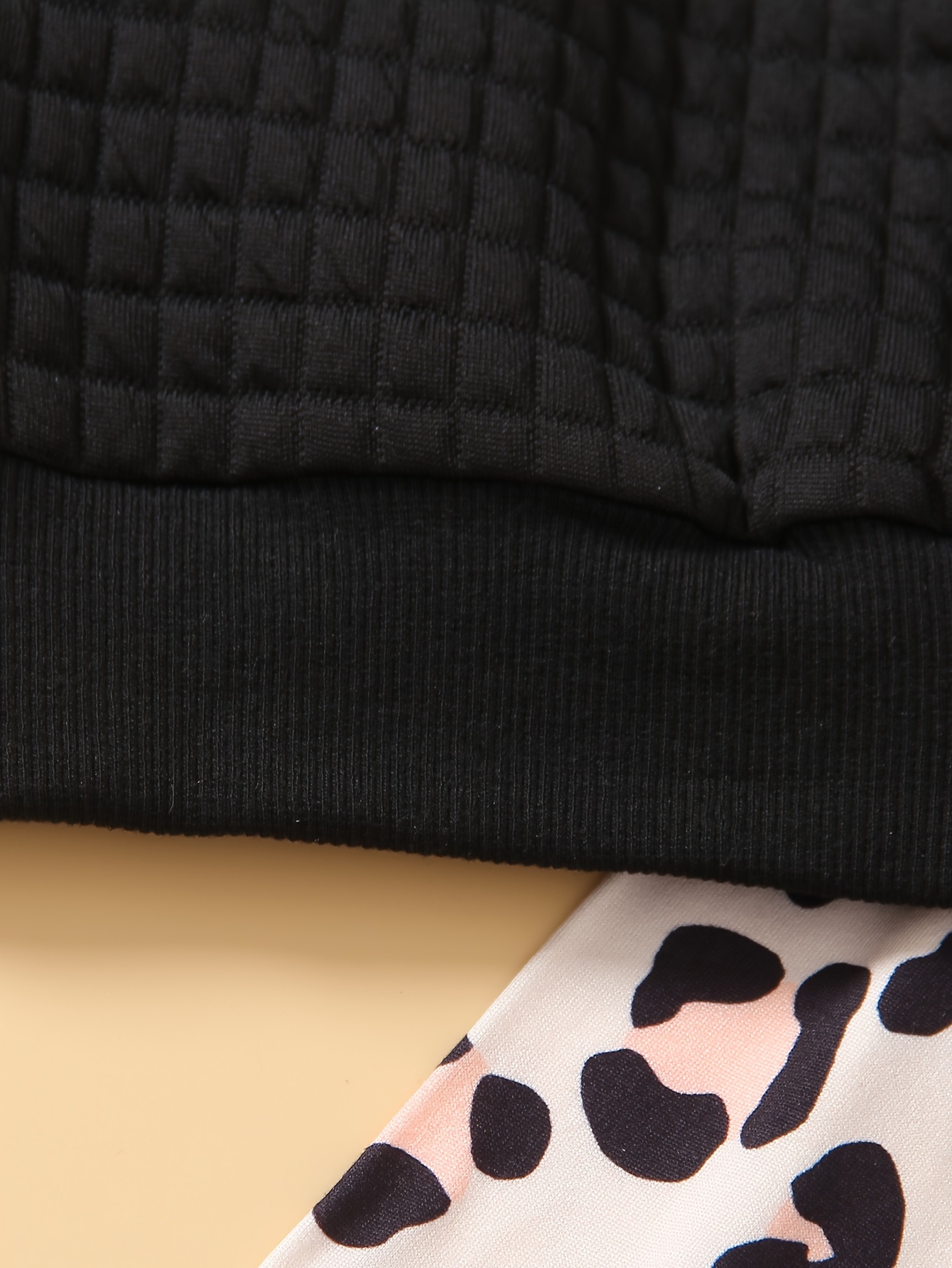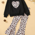 Girls 2pc, Leopard Print Heart Graphic Pullover + Leopard Print Flare Pants Kids Clothes For Fall (Random Leopard Pattern) - Black / 4Y is backordered and will ship as soon as it is back in stock.