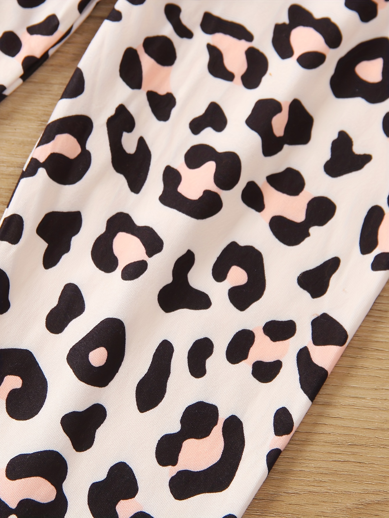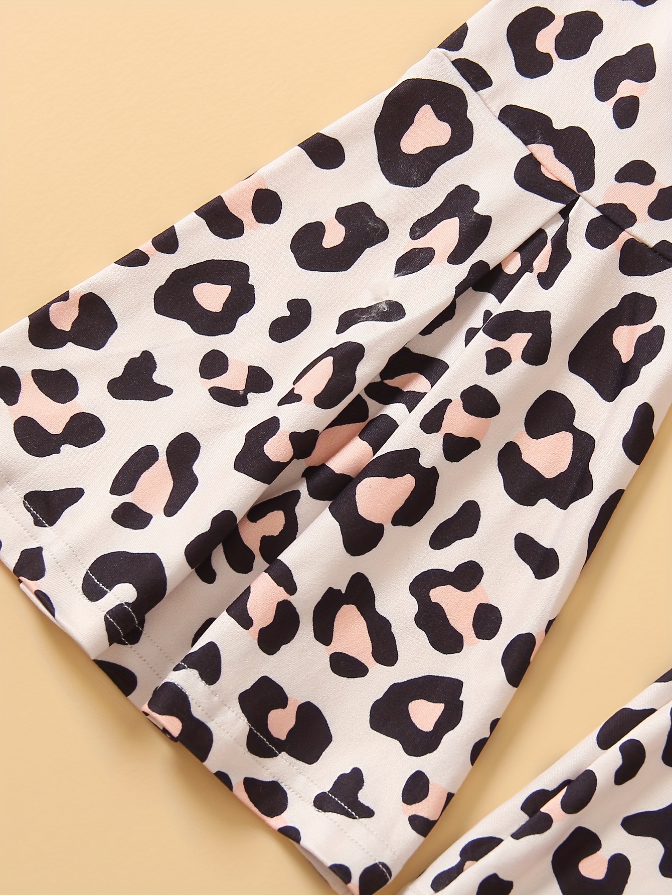 Girls 2pc, Leopard Print Heart Graphic Pullover + Leopard Print Flare Pants Kids Clothes For Fall (Random Leopard Pattern)
