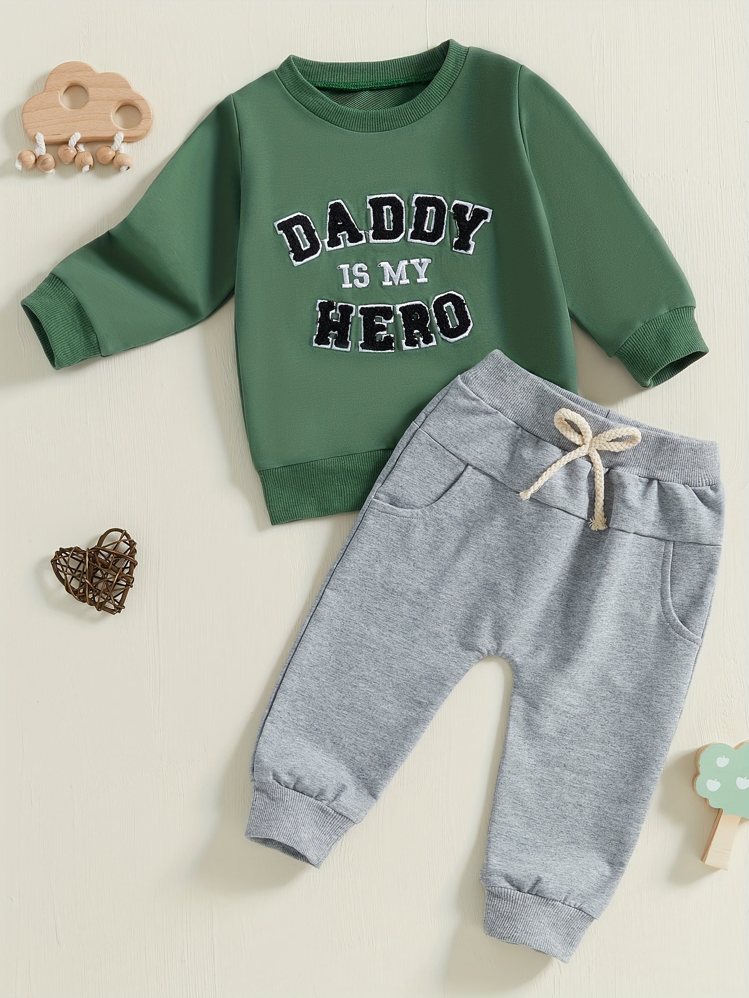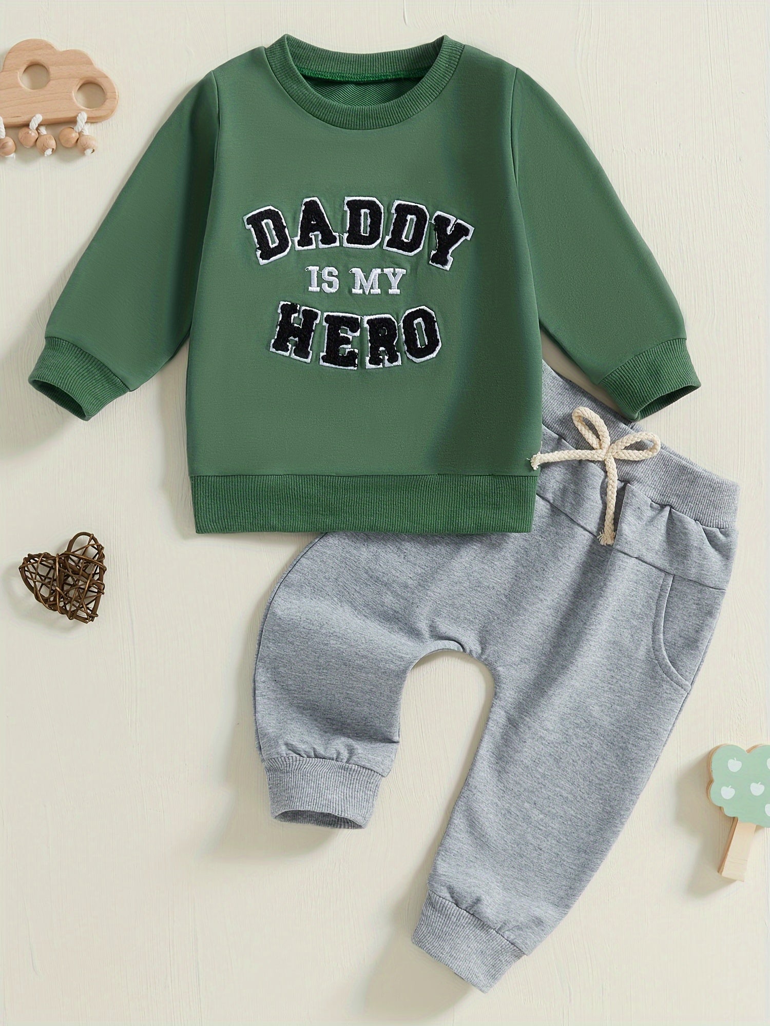Toddler Boys Fall Outfits Letter Embroidery Long Sleeve Sweatshirts and Long Pants 2pcs Clothes Set - Green / 6-9M is backordered and will ship as soon as it is back in stock.
