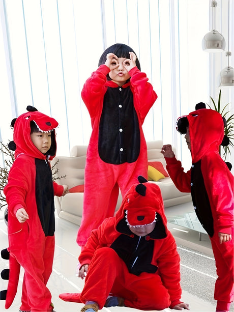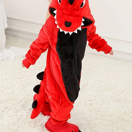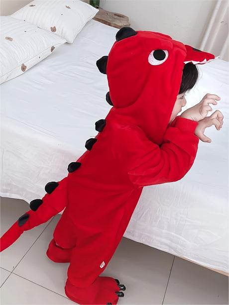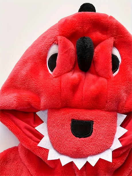 1pc Boys Cozy Dinosaur Hooded Jumpsuit For Halloween Parties, Boys Clothes