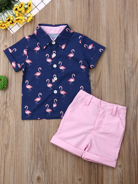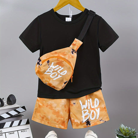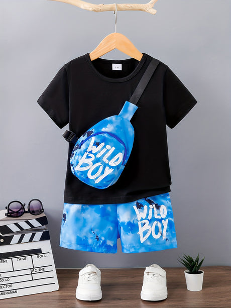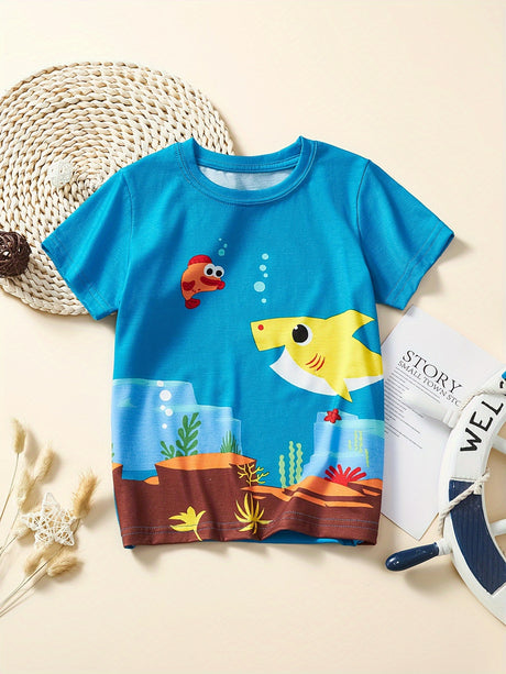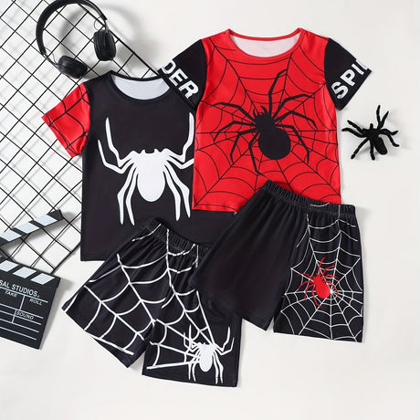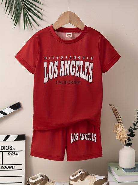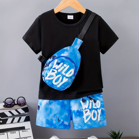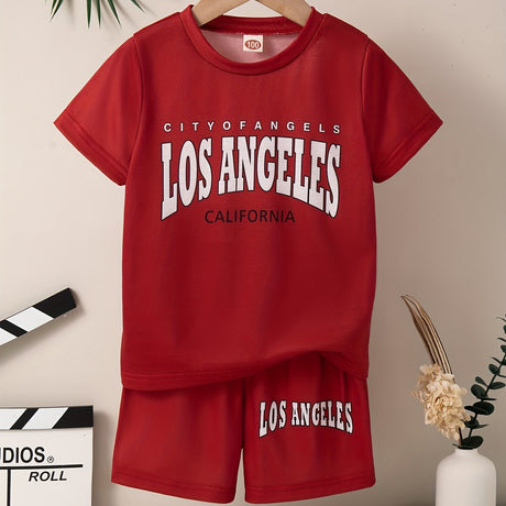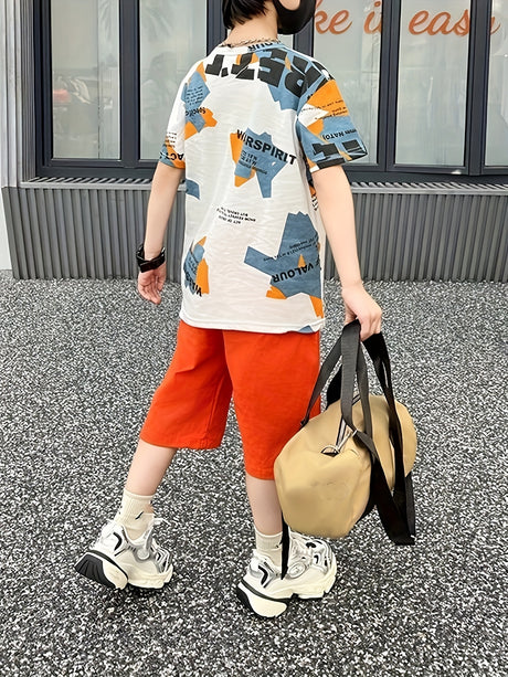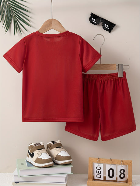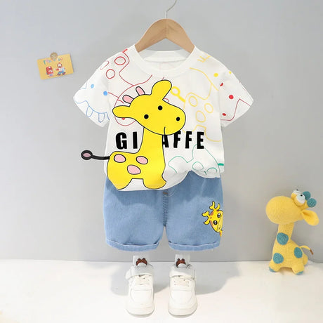 Summer Cartoon Print Kids Boys Clothes Tops+ Shorts 2pcs/set Children Cotton Sport Suit
