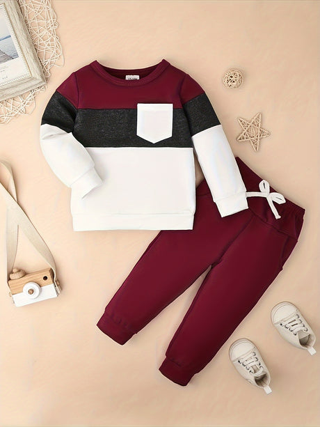 2pcs Boy's Plaid Button Hooded Outfit, Hoodie & Pants Set, Boys Clothes, As Gift