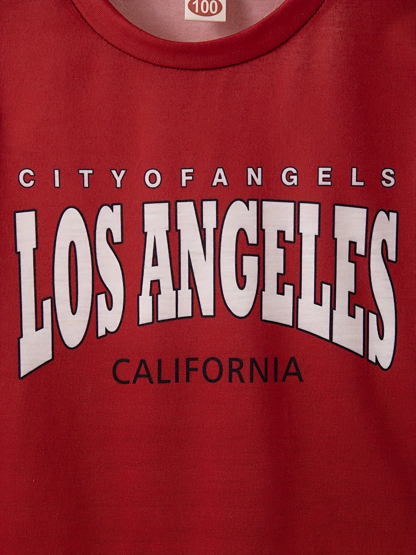2pcs Boys Casual LOS ANGELES Letter Graphic Print Short Sleeve T-shirt & Shorts Set, Comfy Summer Boys Clothes