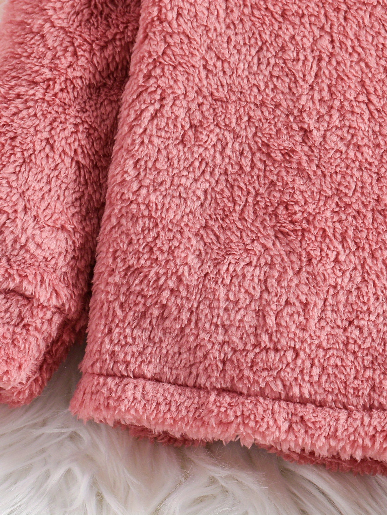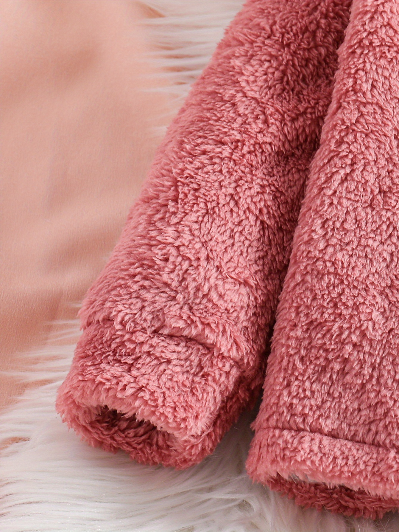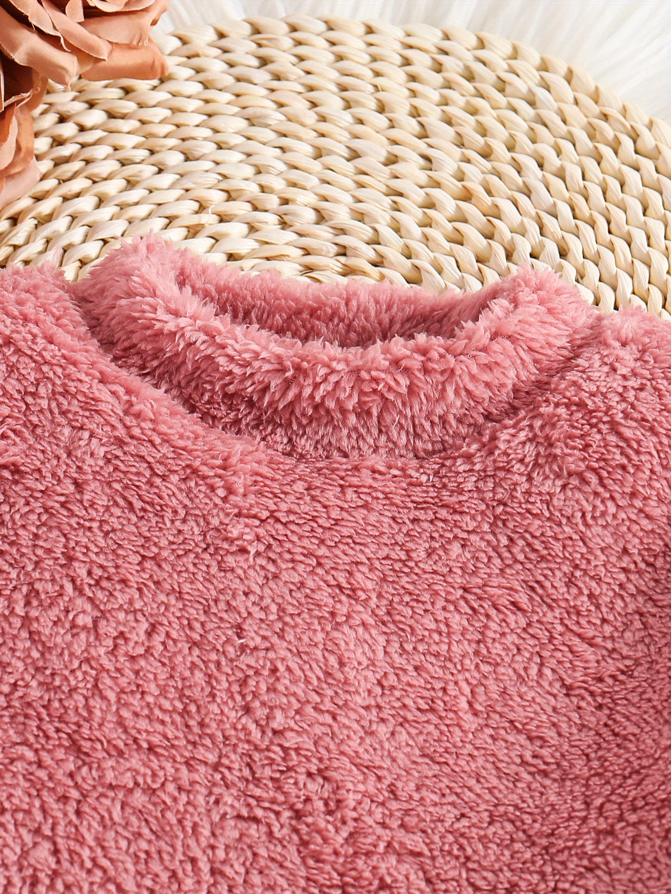 2pc Double-sided Fleece Sets, Solid Top & Jogger Pants Kids Clothes For Toddler Girls Fall Winter Outdoor