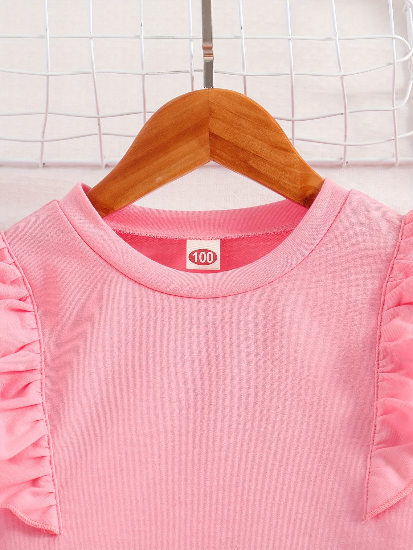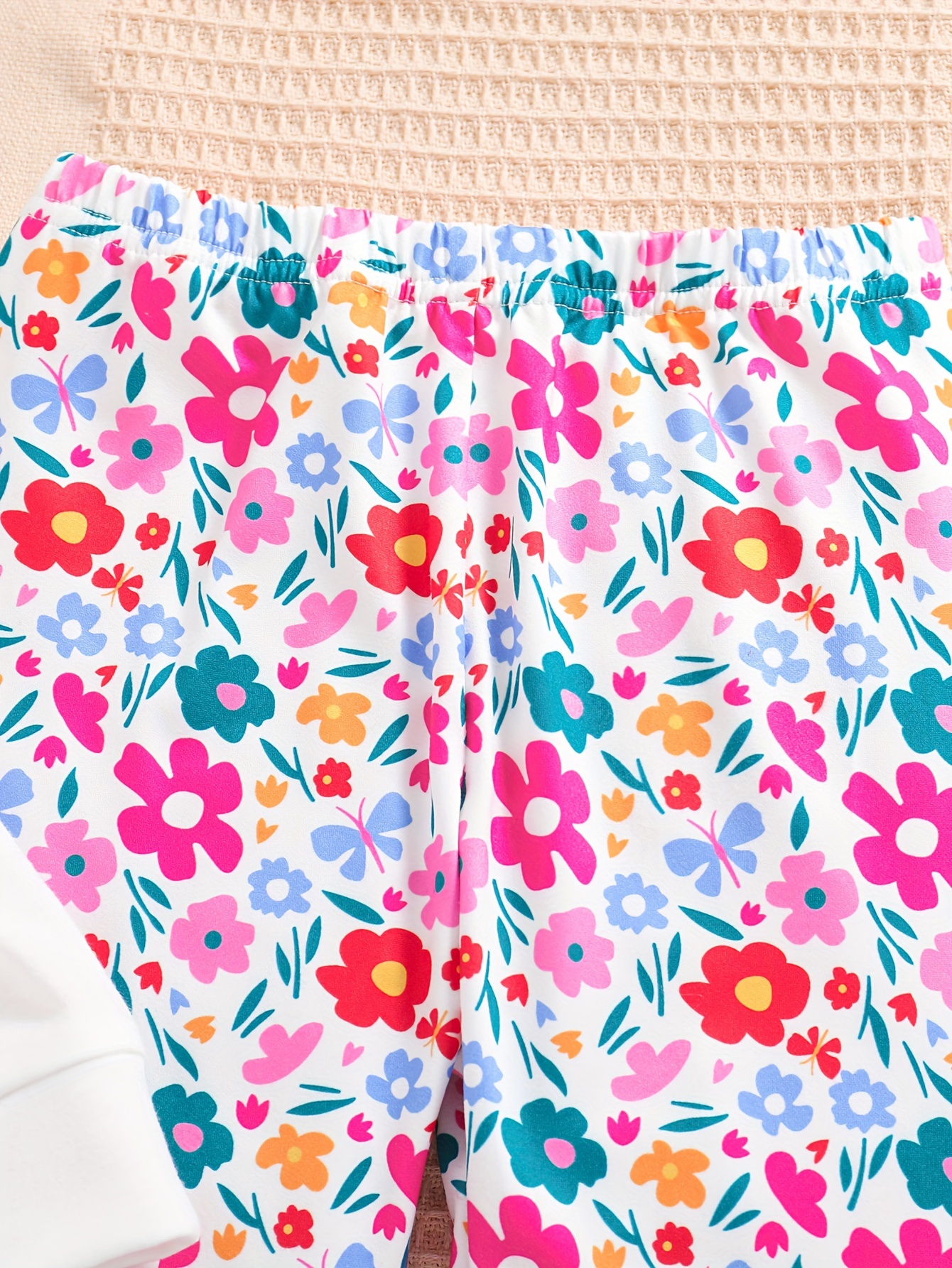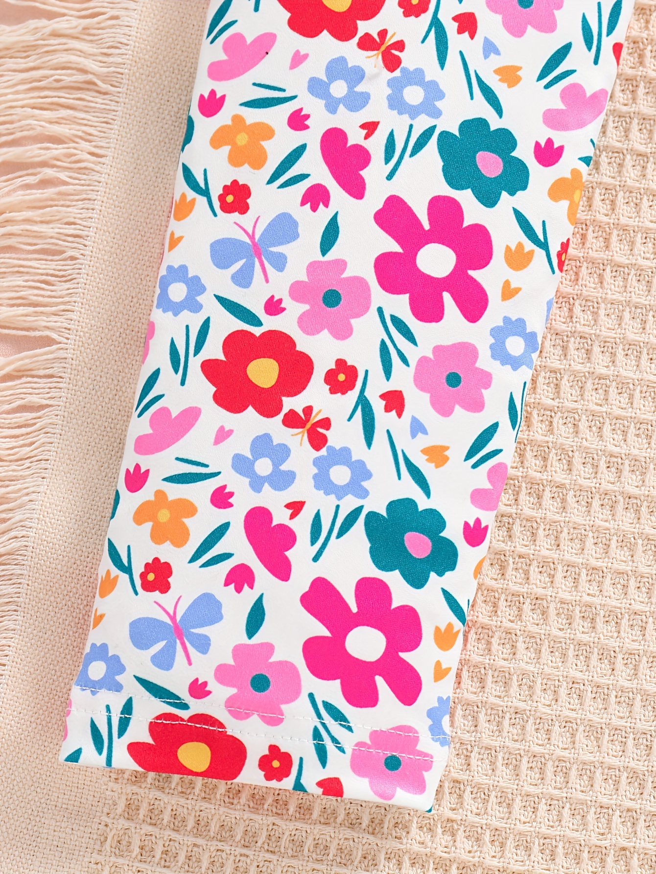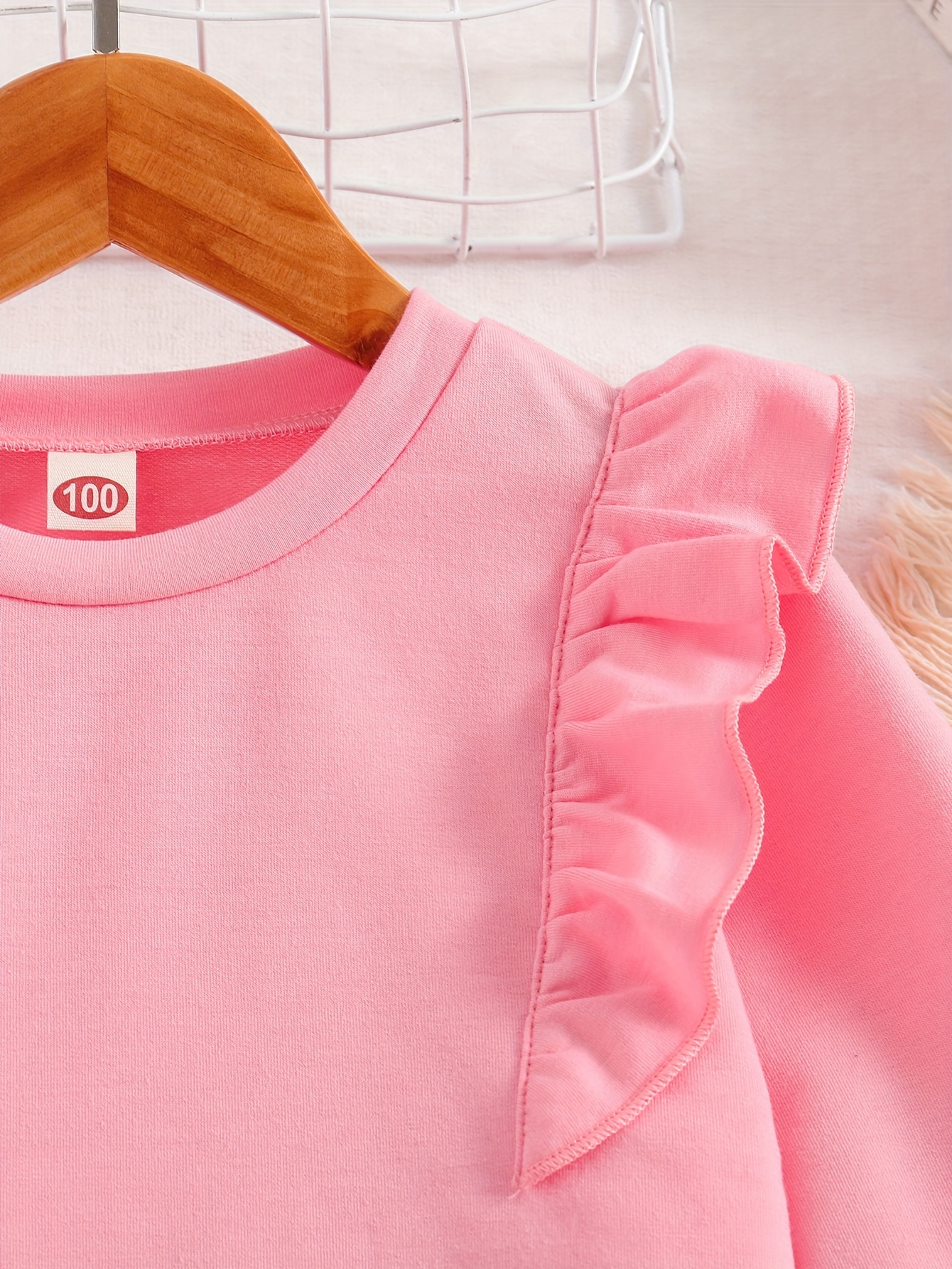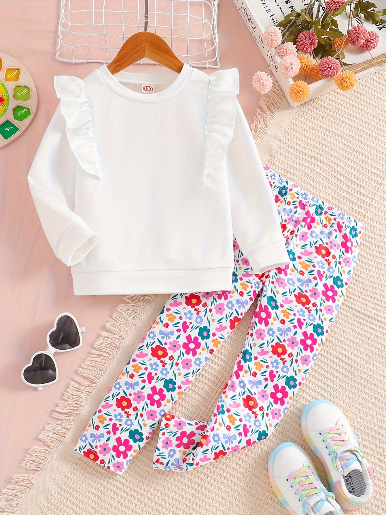 Girls 2pc, Flutter Trim Long Sleeve Pullover + Flora Pants Kids Clothes For Spring Fall