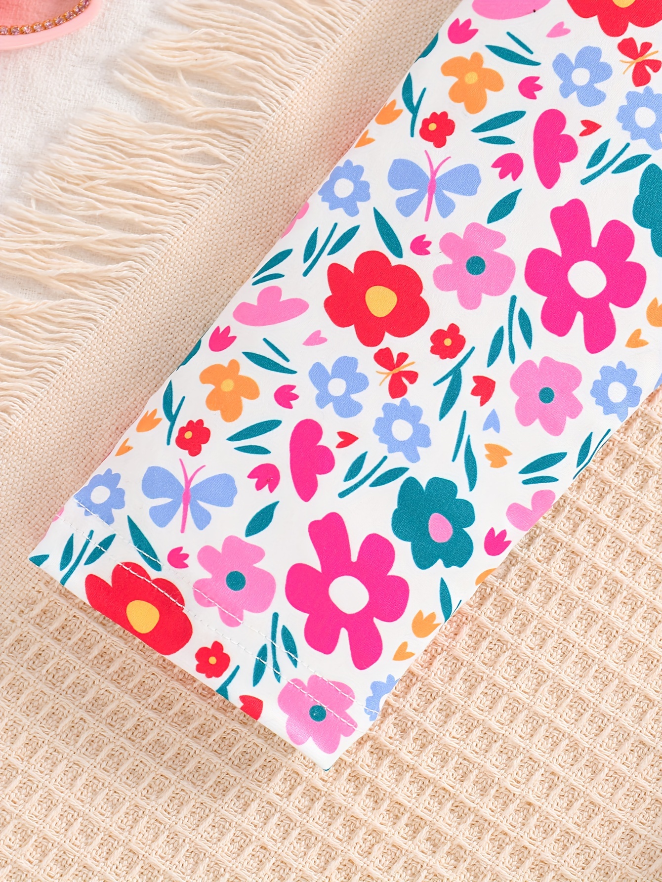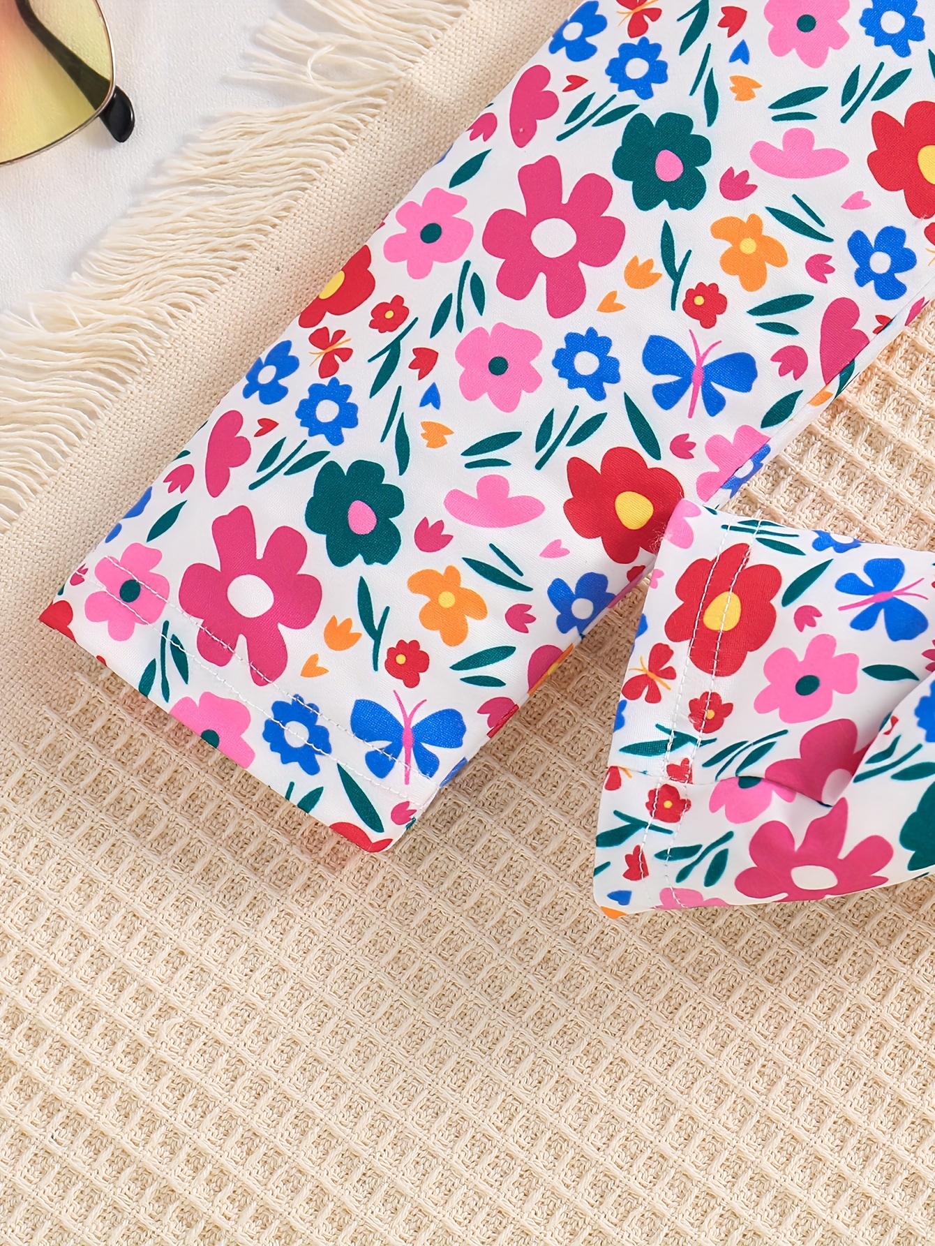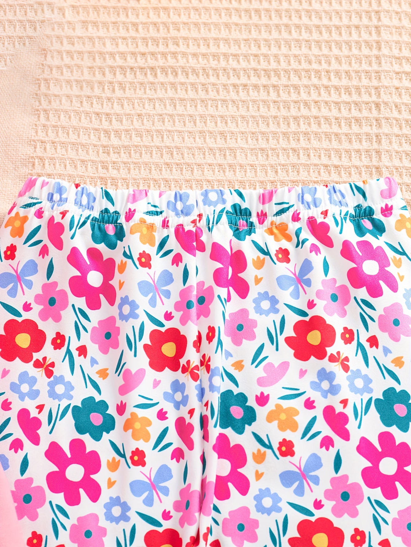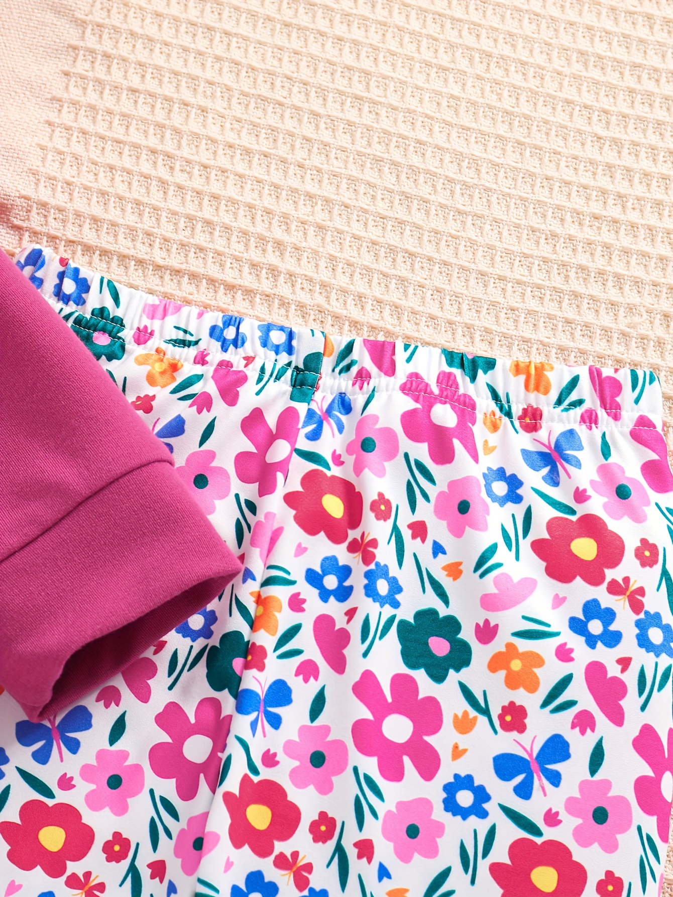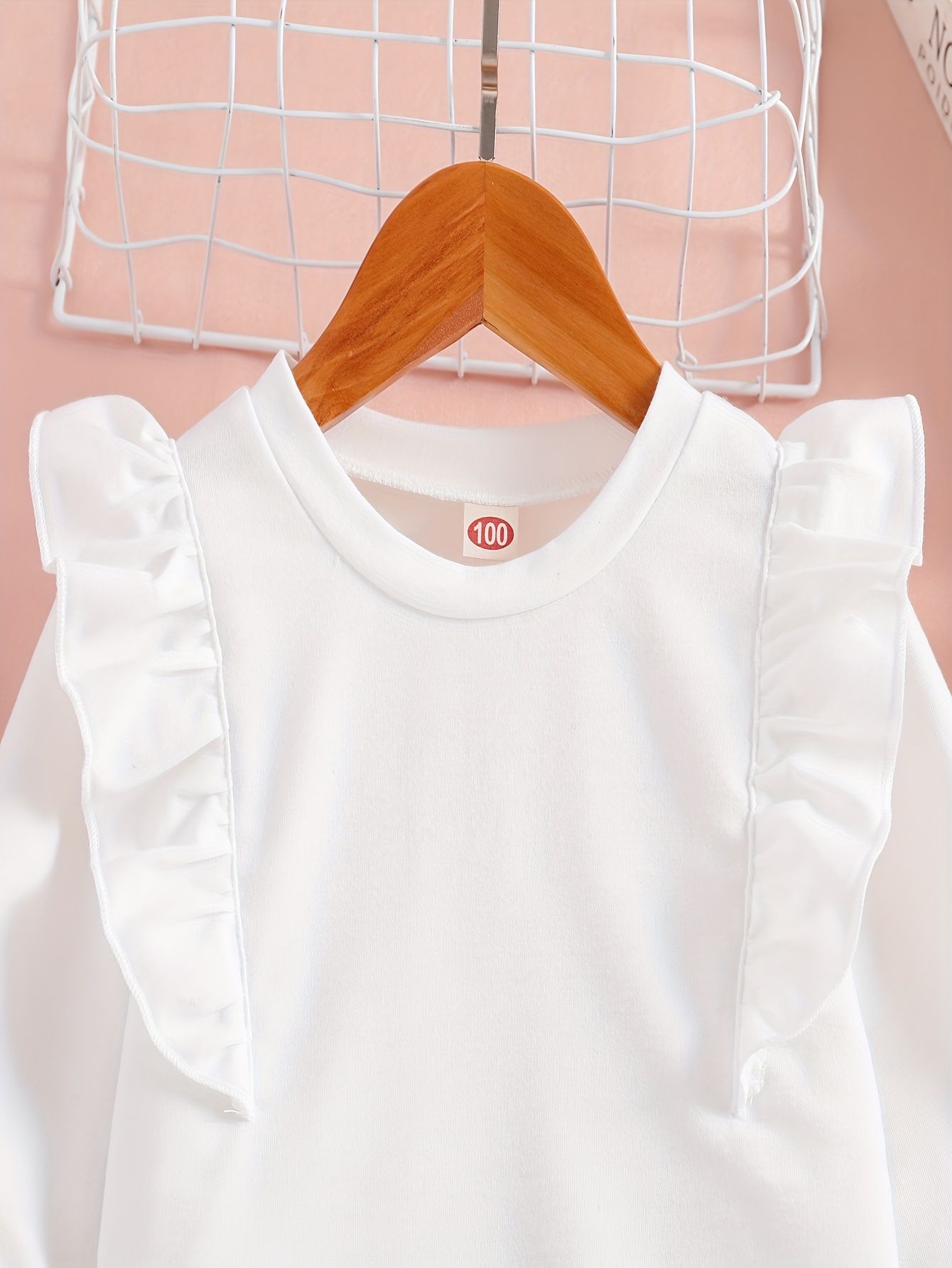 Girls 2pc, Flutter Trim Long Sleeve Pullover + Flora Pants Kids Clothes For Spring Fall