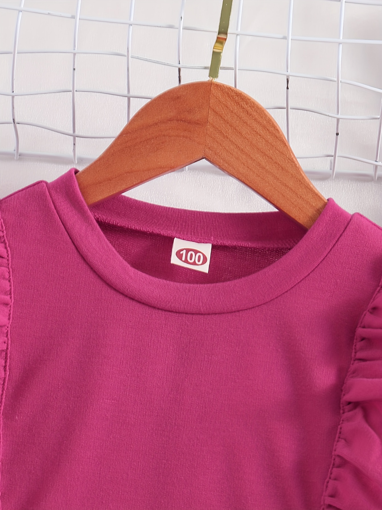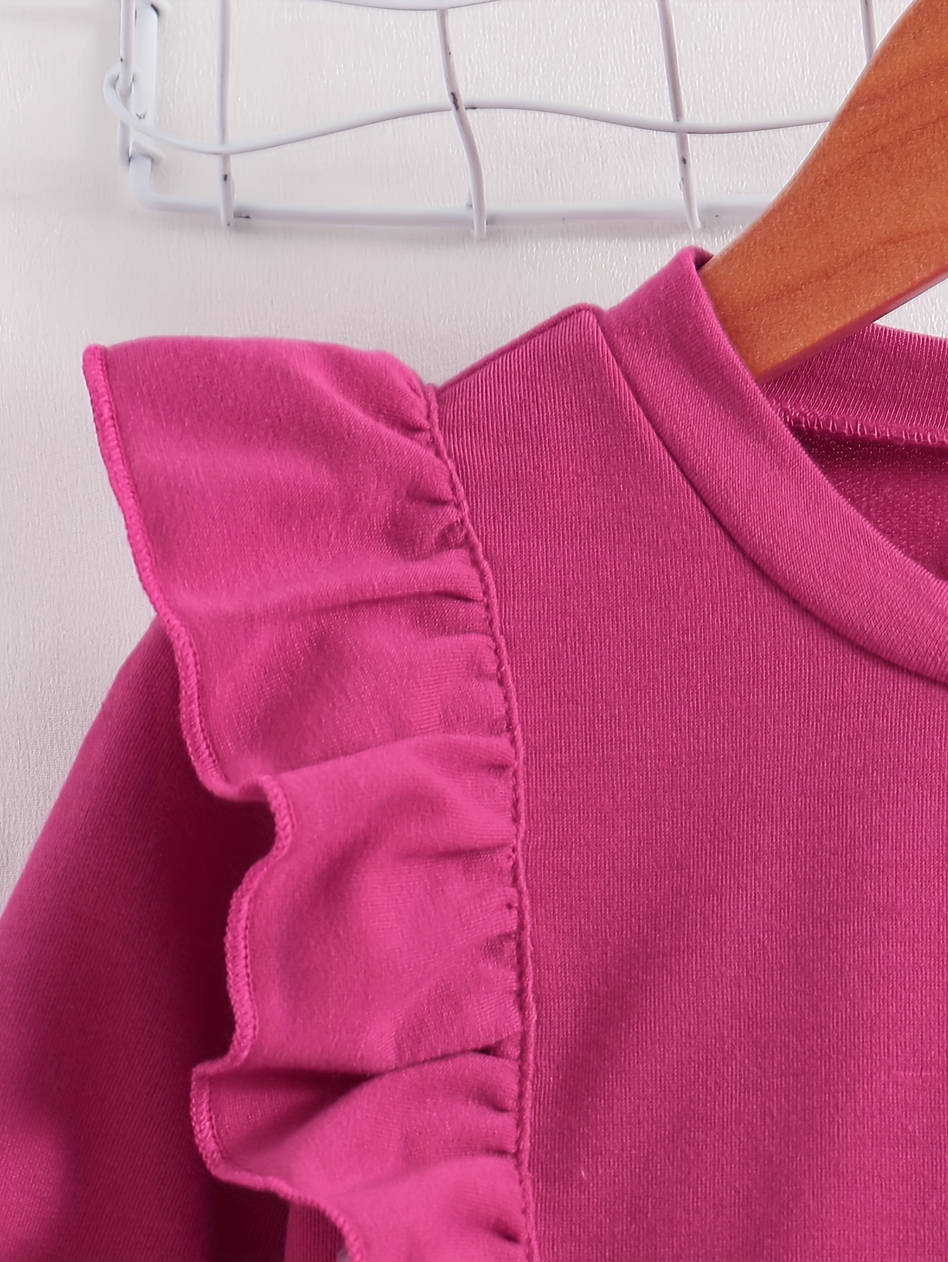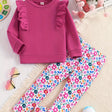 Girls 2pc, Flutter Trim Long Sleeve Pullover + Flora Pants Kids Clothes For Spring Fall - Rose Red / 1-2Y is backordered and will ship as soon as it is back in stock.