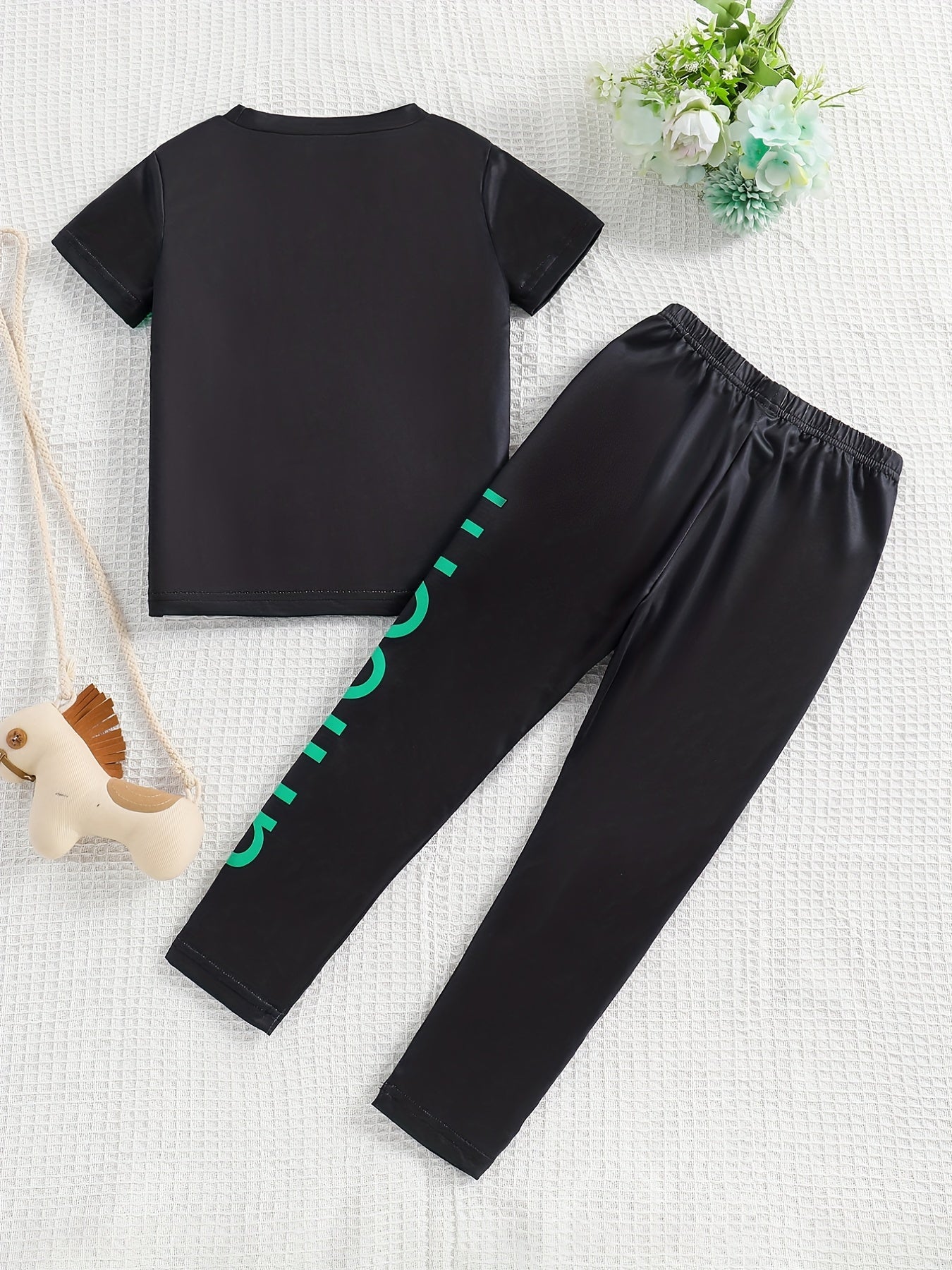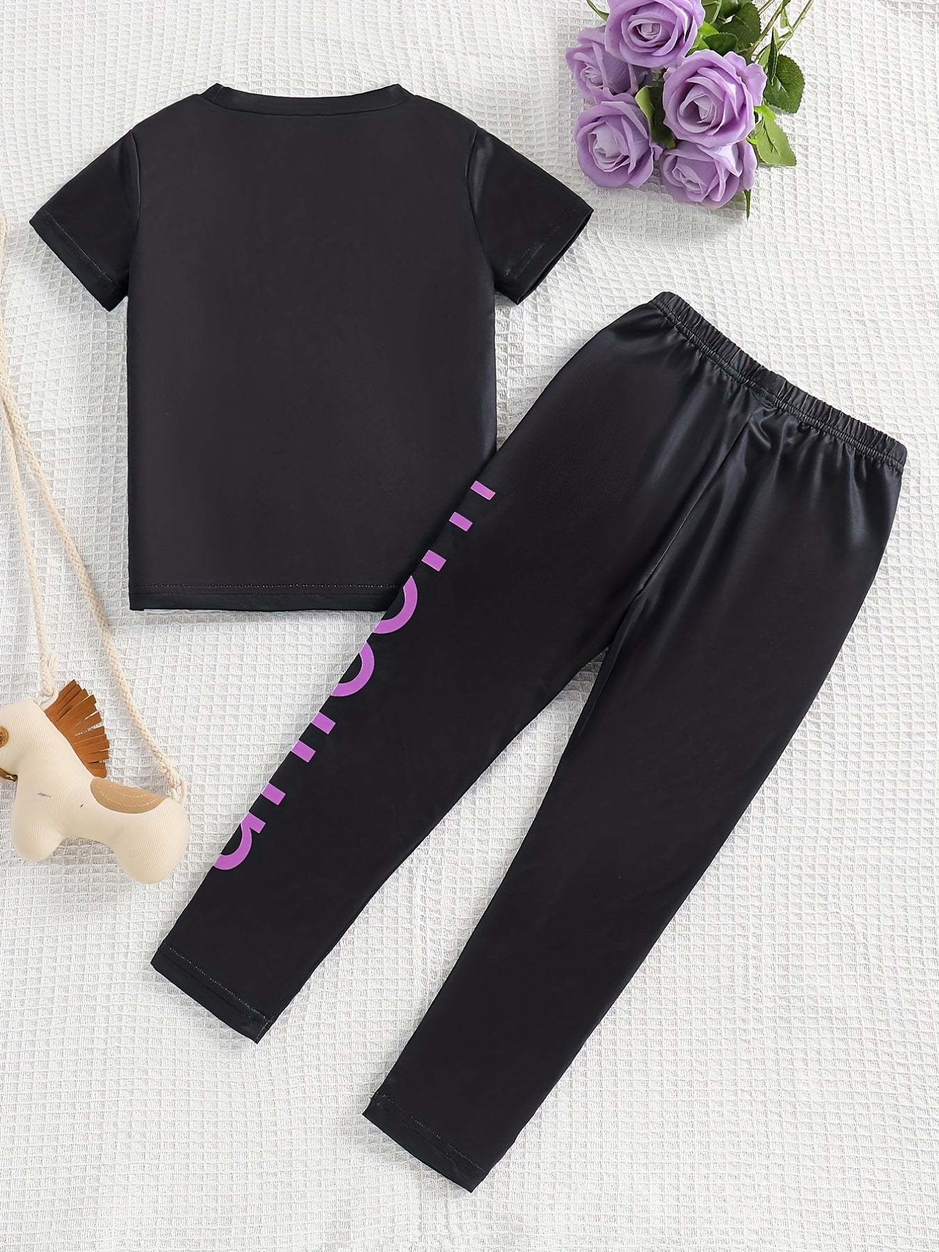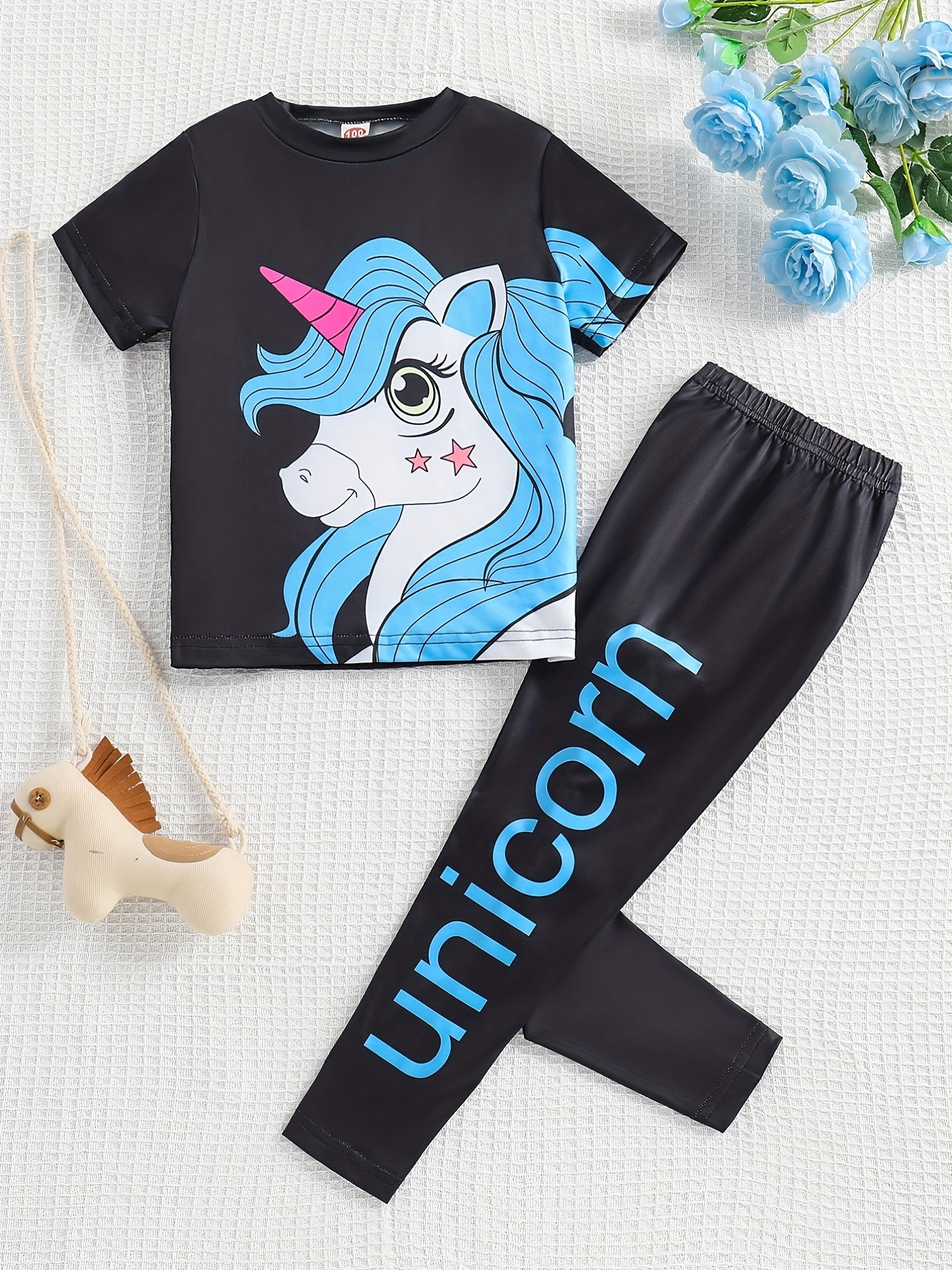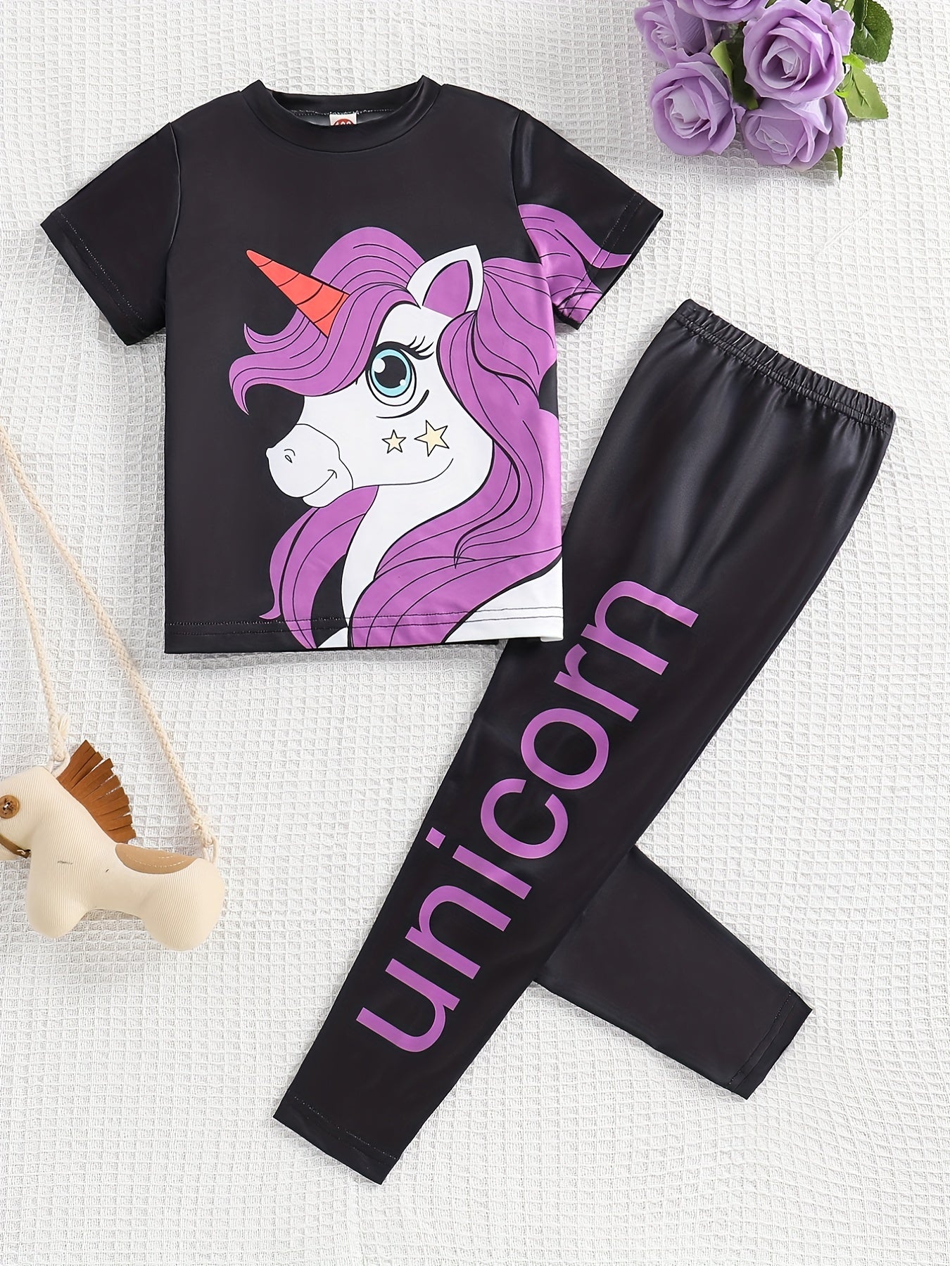Girl's 2pcs T-shirt & Elastic Waist Pants Set, UNICORN Print Short Sleeve Tee Top, Casual Outfits, Kids Clothes For Summer