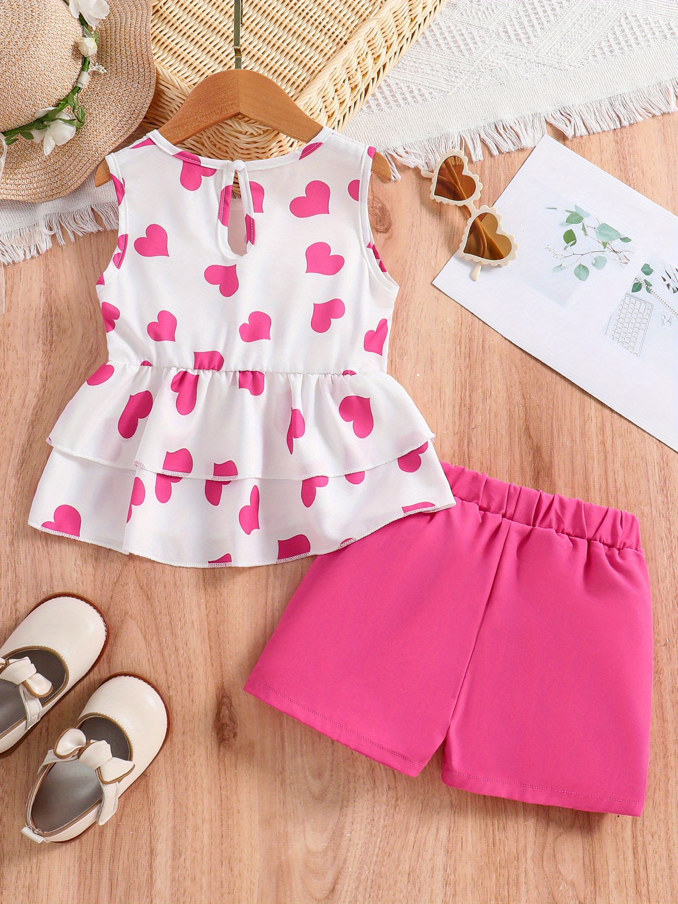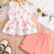 Girls Casual Trendy Cute Heart Graphic Sleeveless Peplum Top & Shorts Set For Summer Holiday Party Kids Clothes - Pink Color / 1-2Y is backordered and will ship as soon as it is back in stock.