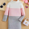 Girls Splicing Ribbed Knit Turtleneck Dress Kids Clothes Party Gift 3-8y - Mixed Color / 3Y is backordered and will ship as soon as it is back in stock.