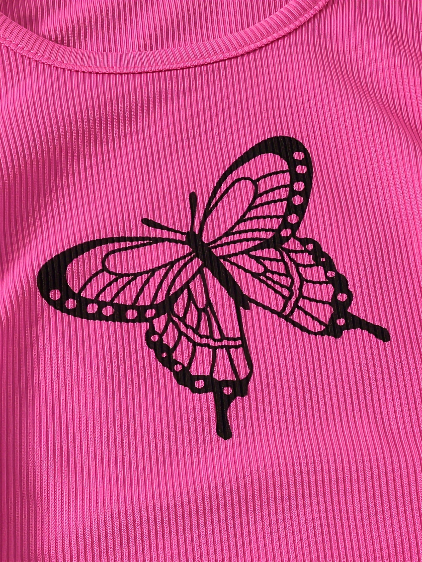 Girl's Trendy 2pcs, Drawstring T-shirt & Skirt Set, Butterfly Print Ribbed Short Sleeve Top, Casual Outfits, Kids Clothes For Summer