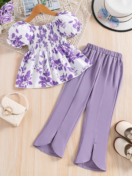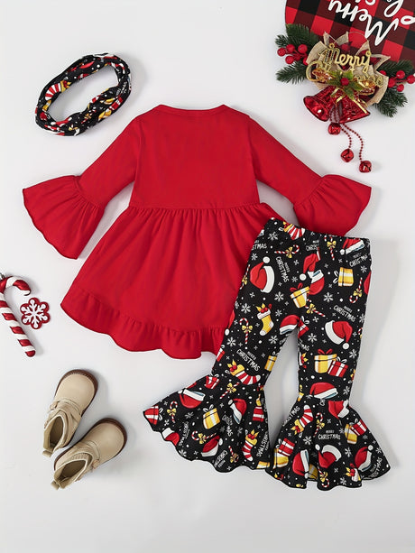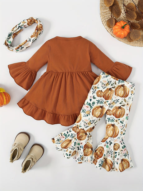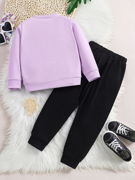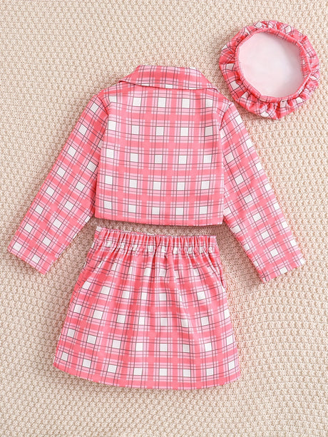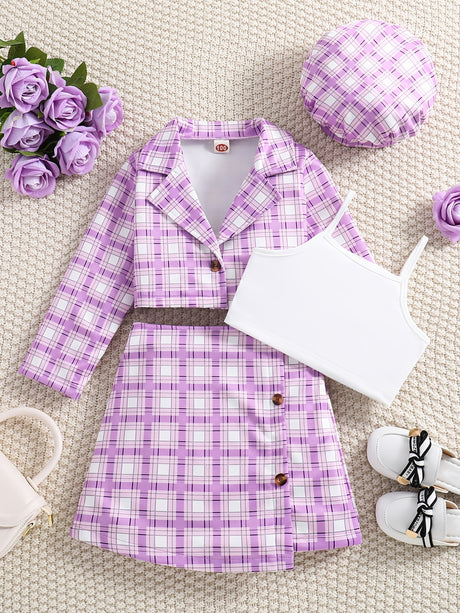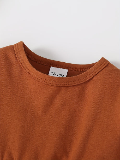 Girls 2pc, Solid Pullover Long Sleeve Top + Plaid Jumpsuit Kids Clothes For Spring Fall Outdoor