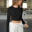Womens Long Sleeve Shirts Ribbed Crop Tops Workout Slim Fit Crew Neck Stretchy Fitted Tee