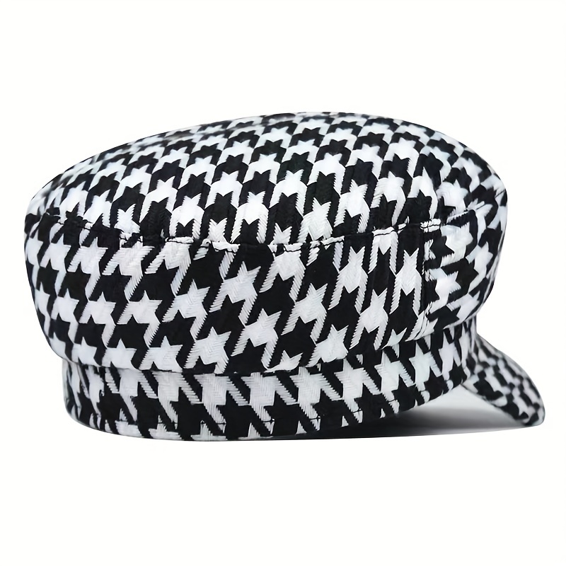 Houndstooth Newsboy Cap Women's Elegant Military Style Hats Breathable Painters Hats
