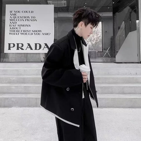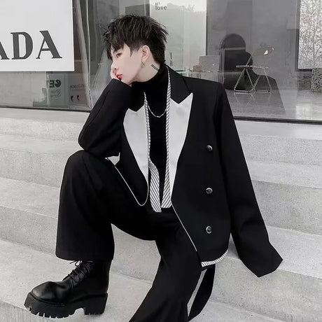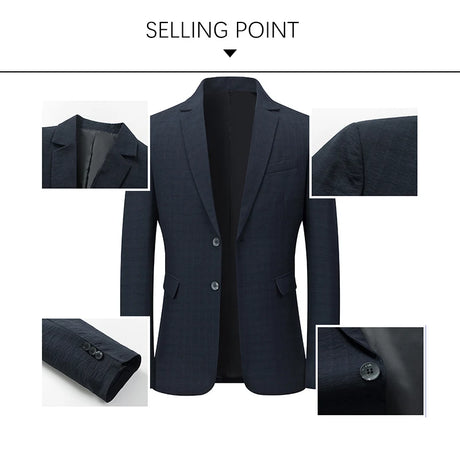 Houndstooth Business Blazer for Men 2023 Plaid Notched Lapel Suit Jacket Formal Male Fashion Coat
