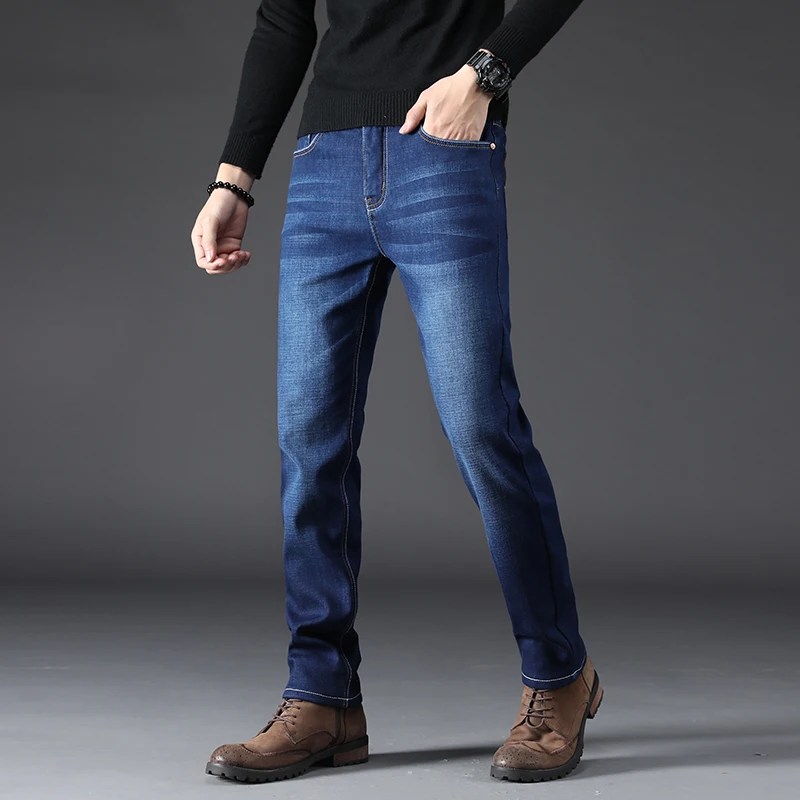 Men's Jeans Straight Leg Loose Elastic Business Casual Daily Versatile Men's Denim Pants 2025 New Outer Wear Men's Jeans Can Be Worn in All Seasons - 008Lan / 30 is backordered and will ship as soon as it is back in stock.