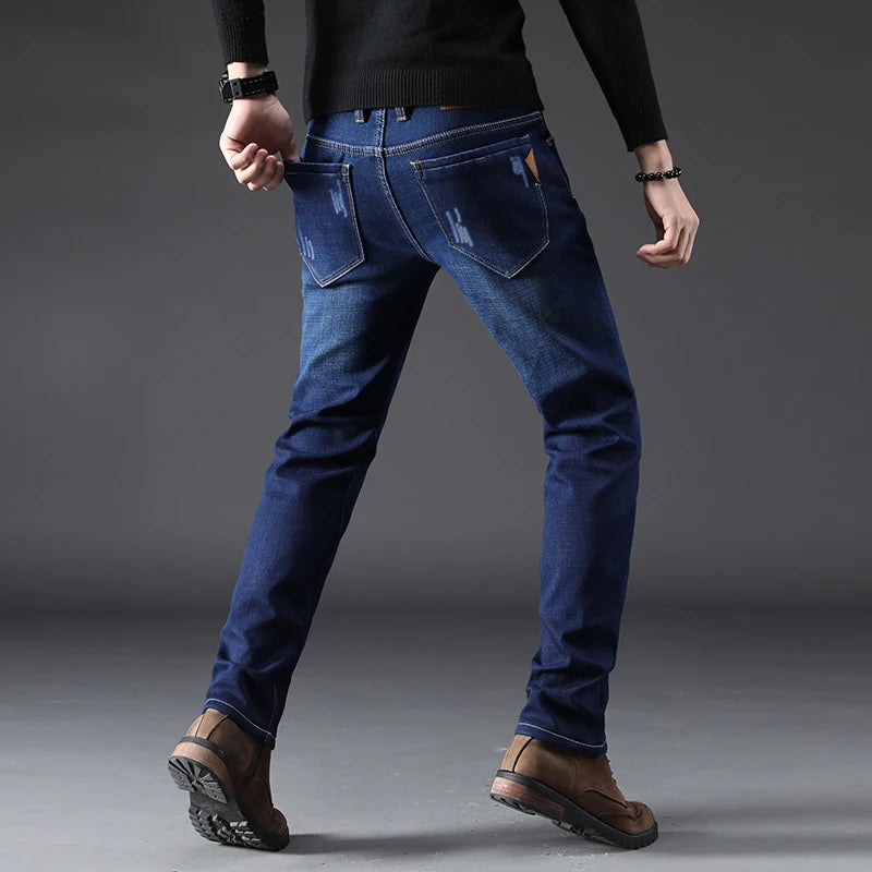 Men's Jeans Straight Leg Loose Elastic Business Casual Daily Versatile Men's Denim Pants 2025 New Outer Wear Men's Jeans Can Be Worn in All Seasons
