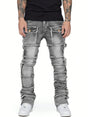 Trendy Men Jeans, European and American Fashionable Workwear with Patch, Elastic, Laminated and Slightly Flared Men Denim Pants. - Gray / XL is backordered and will ship as soon as it is back in stock.