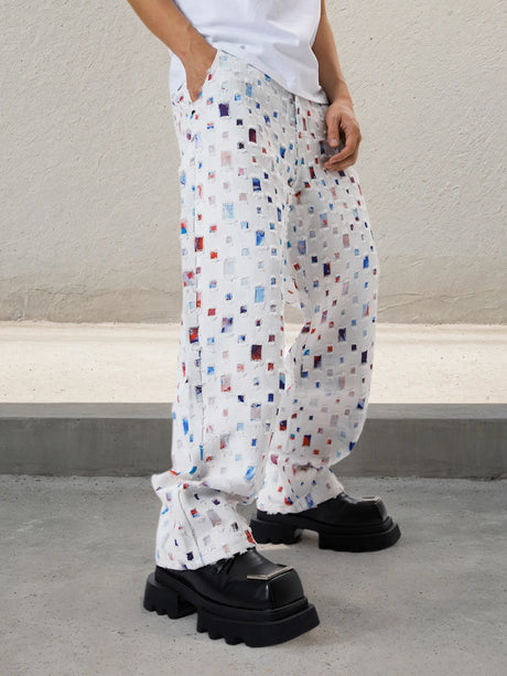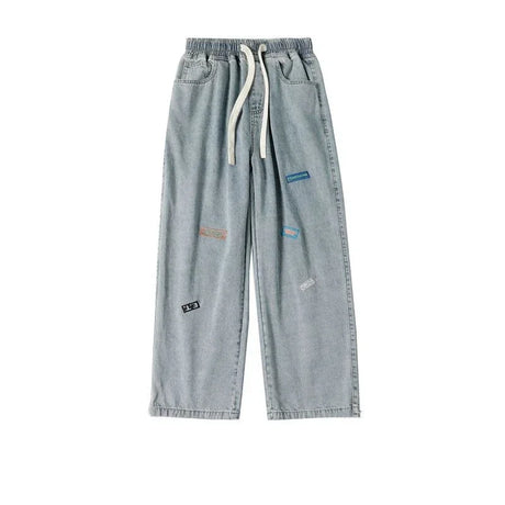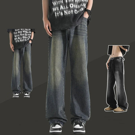 Straight Leg Streetwear White Baggy Jeans for Men Loose Fit Denim Pants Mid Waist Trousers
