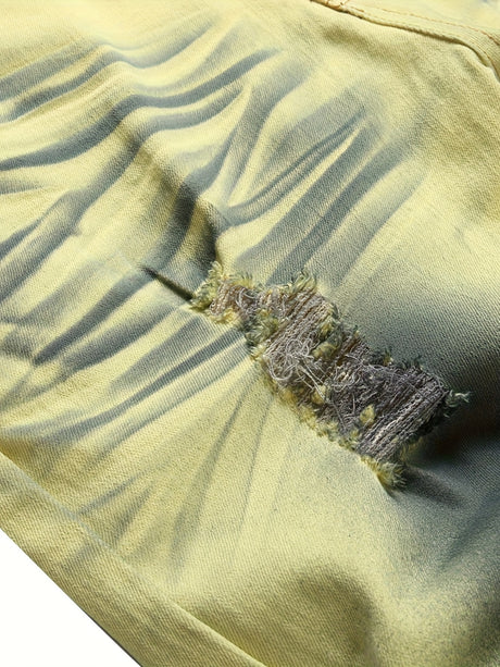 Washed and Made Old Cat Whisker Patch Ripped Elastic Slim Pants Ink Splashing Jeans for Men