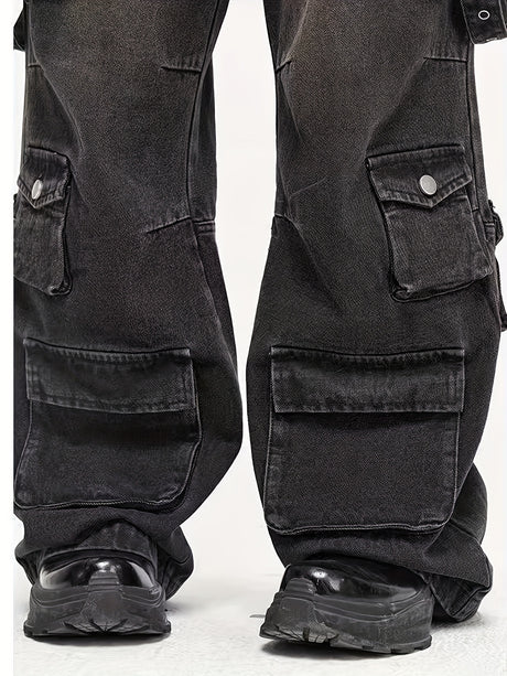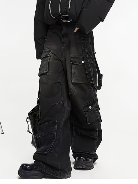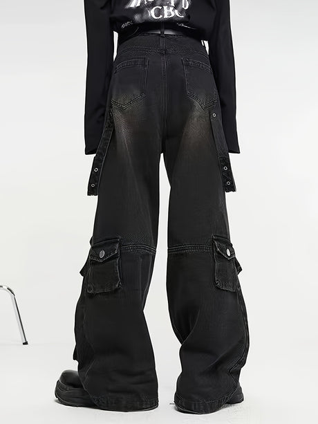 High Street Hip-hop Flared Jeans For Men And Women Summer Street Design LaceSplicing Mopping Pants