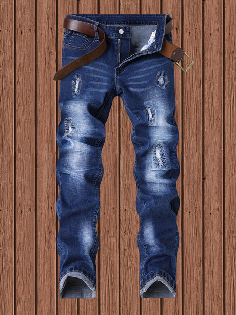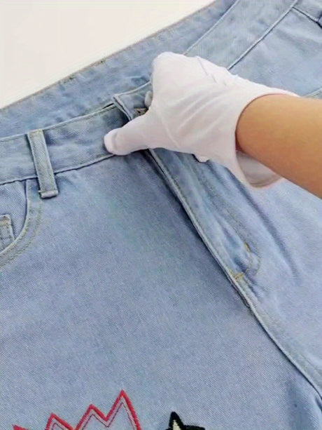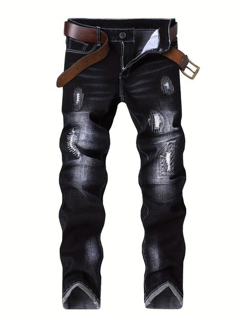 Men'S Slim Fit Letter & Heart Embroidered Ripped Jeans for men