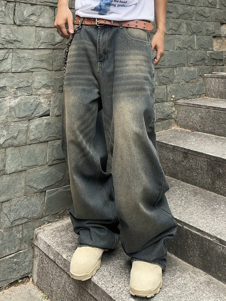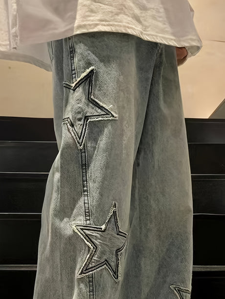 Y2k Baggy Jeans For Men, Hip Hop Grunge Demin Pants Wide Leg Loose Joggers Star Graphic Jeans