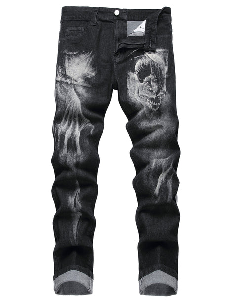 Mens Printed Jeans - Premium Jeans for Men Slim Fit - Skinny Stretch Denim Printed Pants for Men