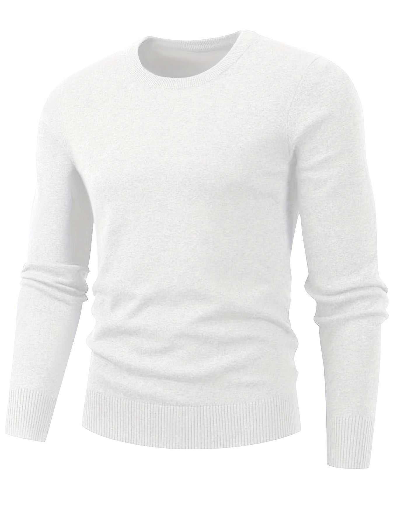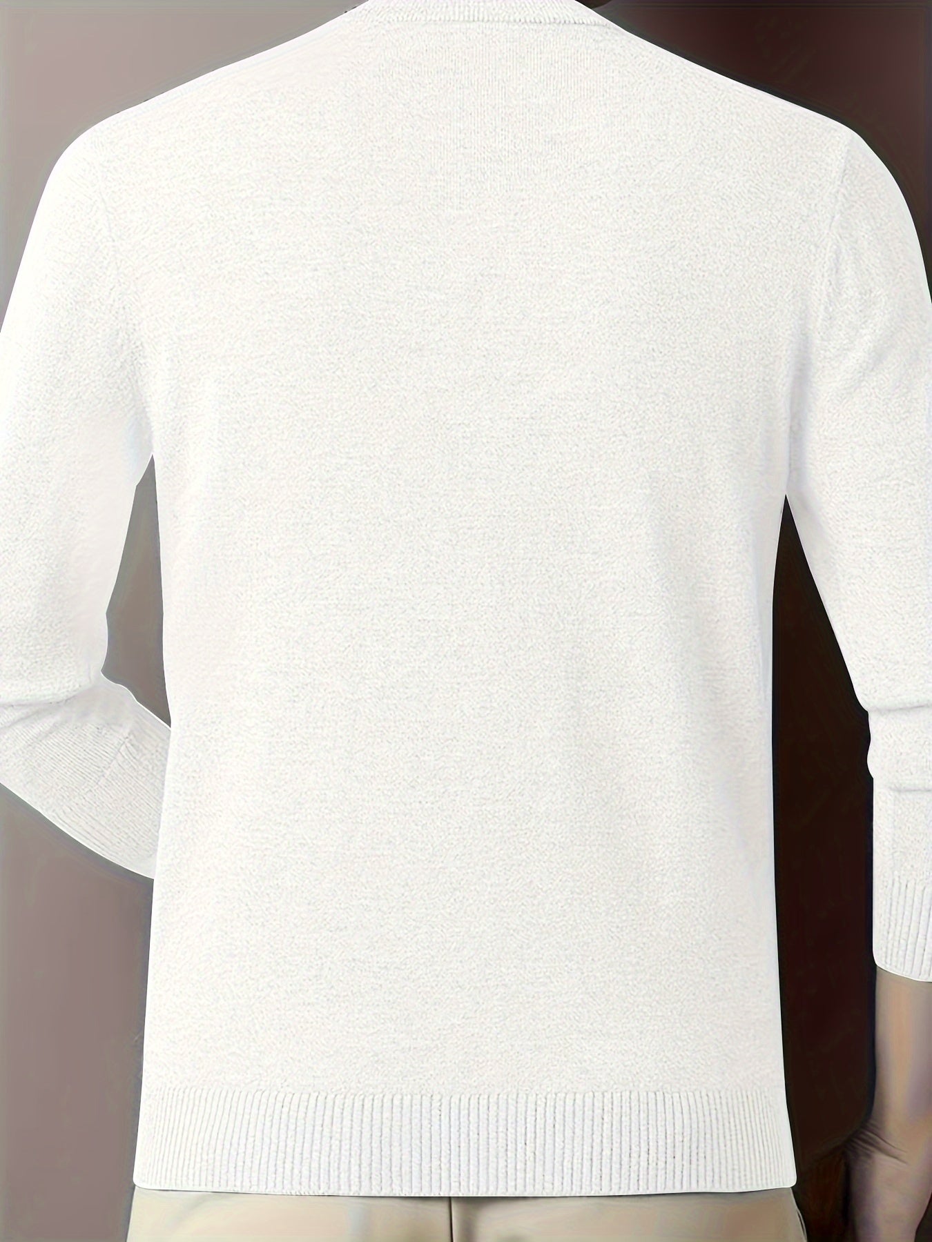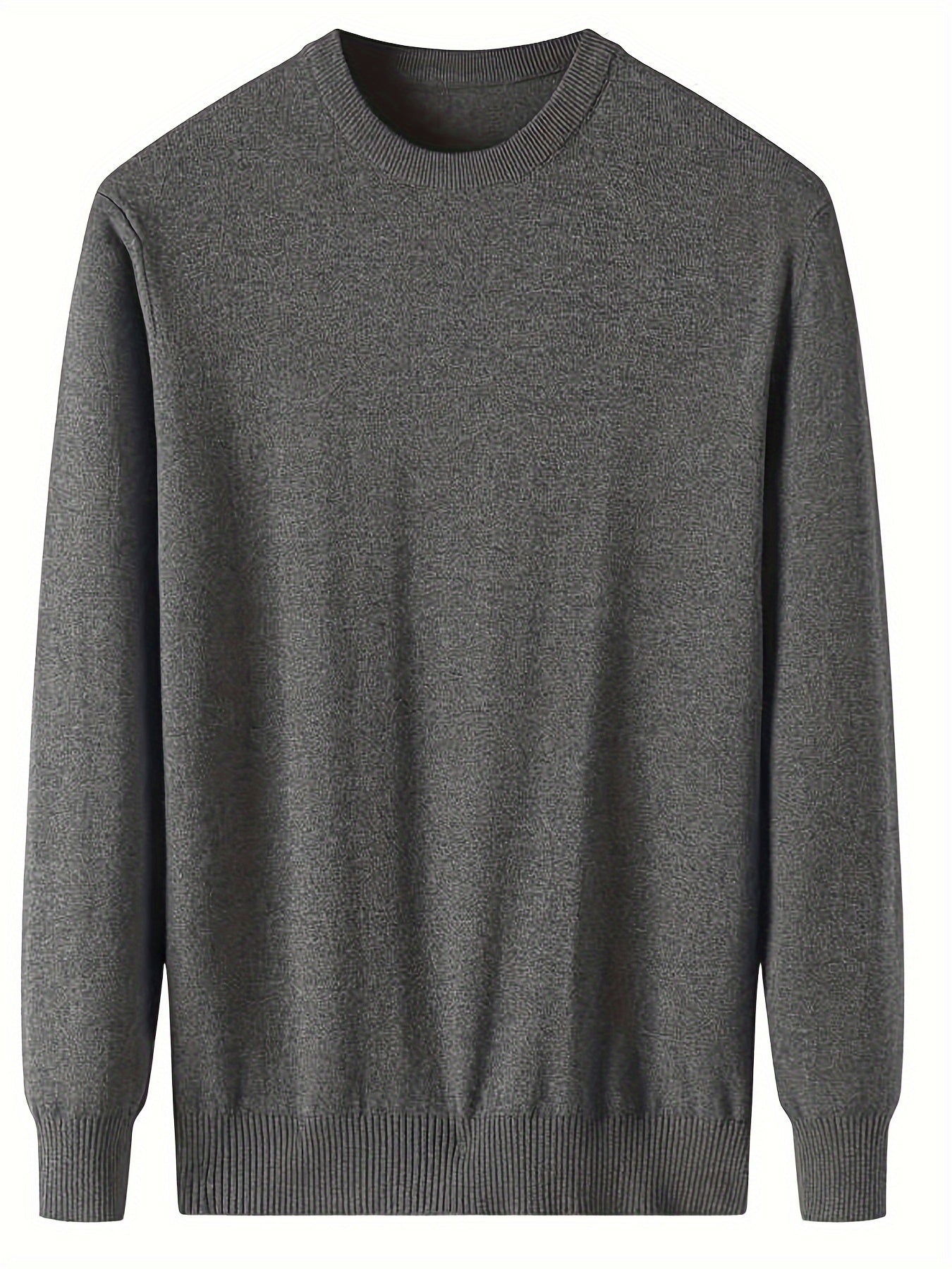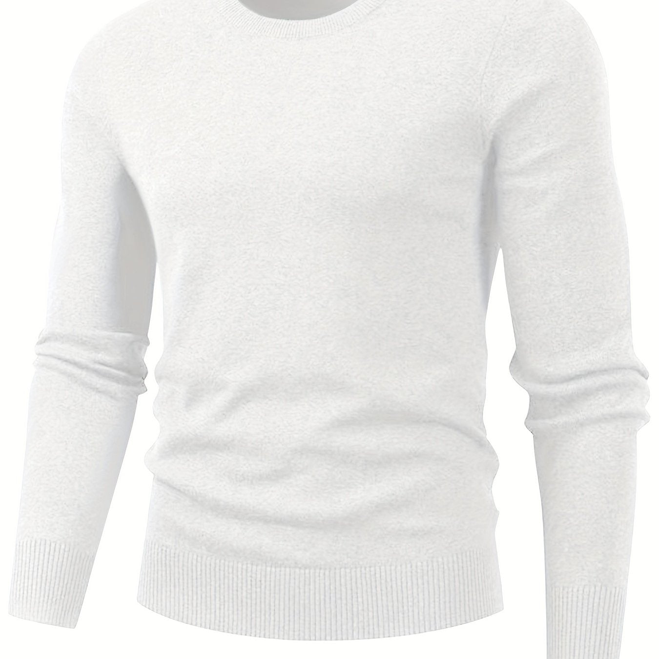 All Match Knitted Solid Sweater, Men's Casual Warm Mid Stretch Crew Neck Pullover Sweater For Men Fall Winter, Old Money Style