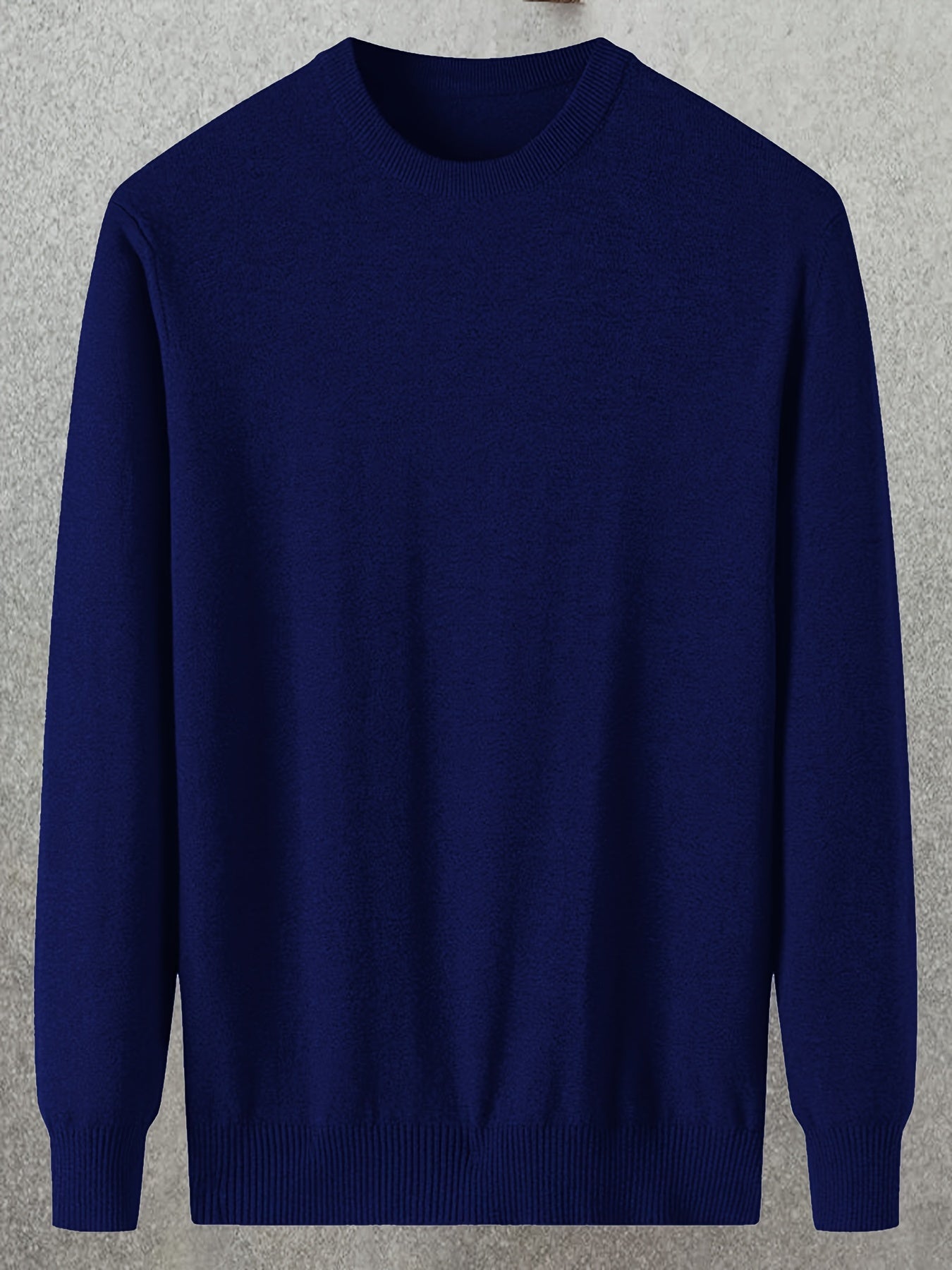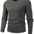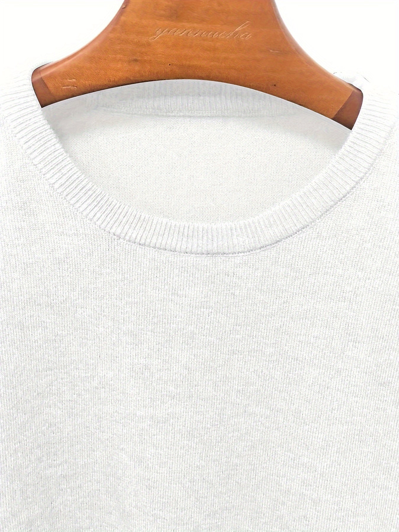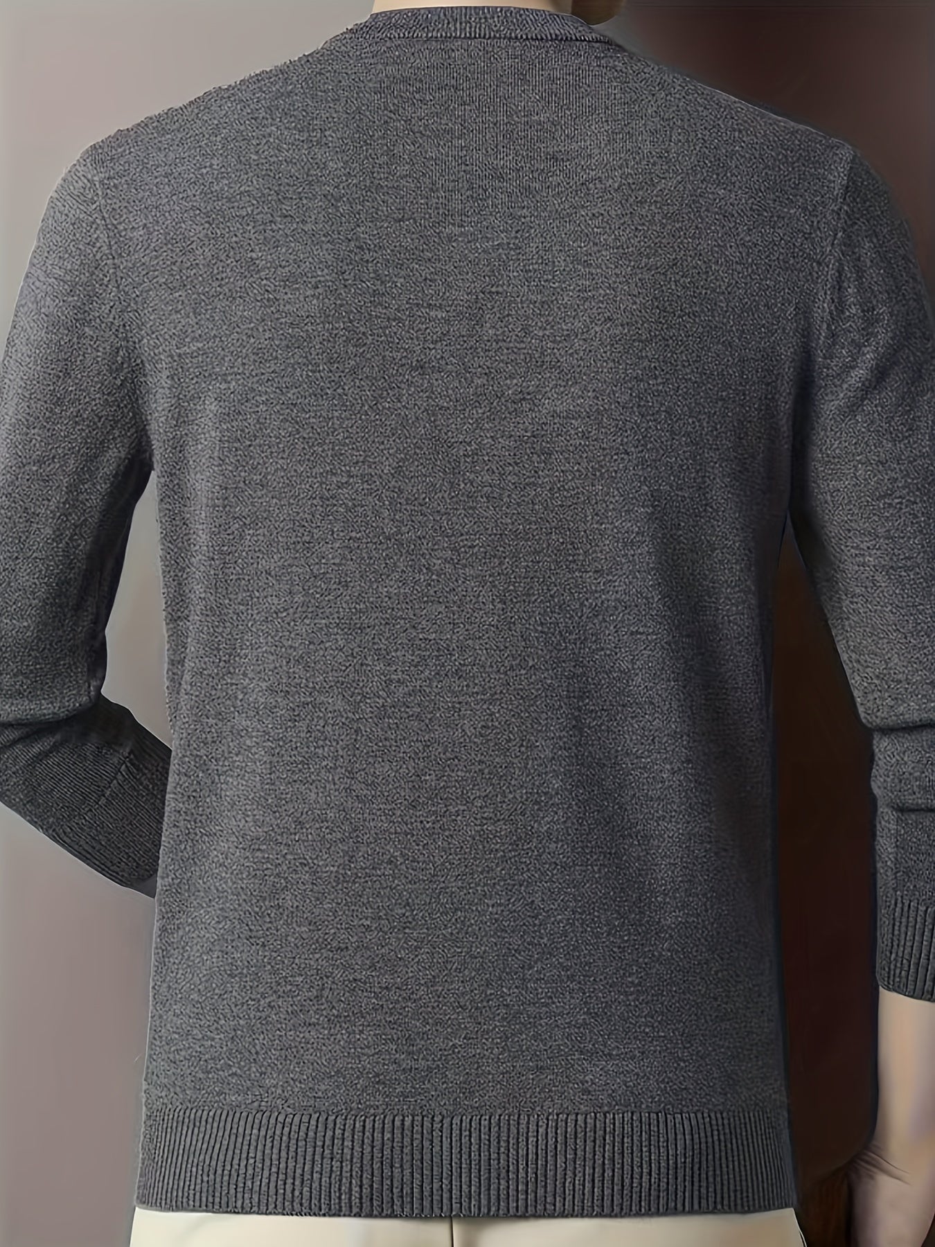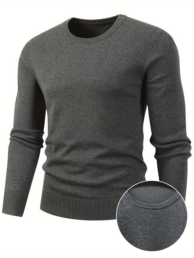All Match Knitted Solid Sweater, Men's Casual Warm Mid Stretch Crew Neck Pullover Sweater For Men Fall Winter, Old Money Style