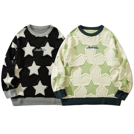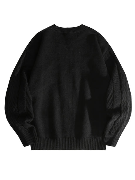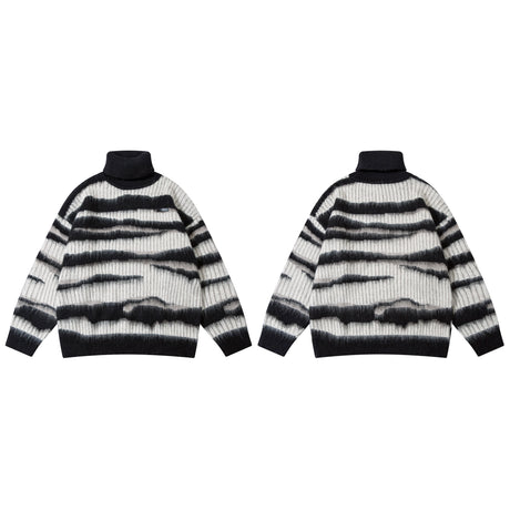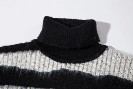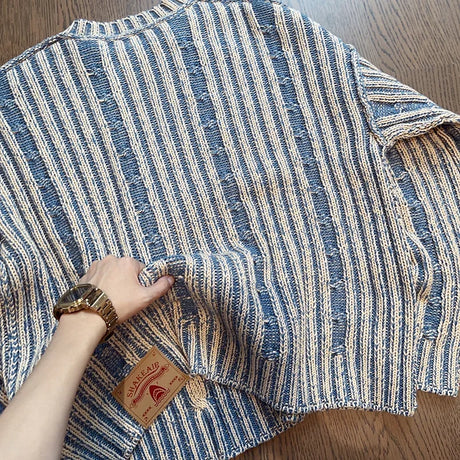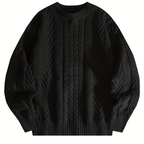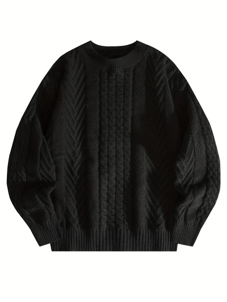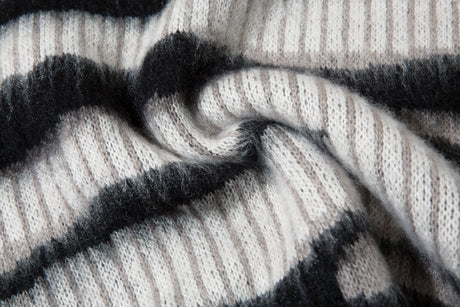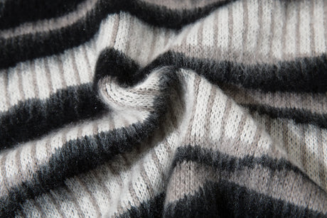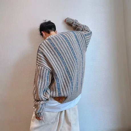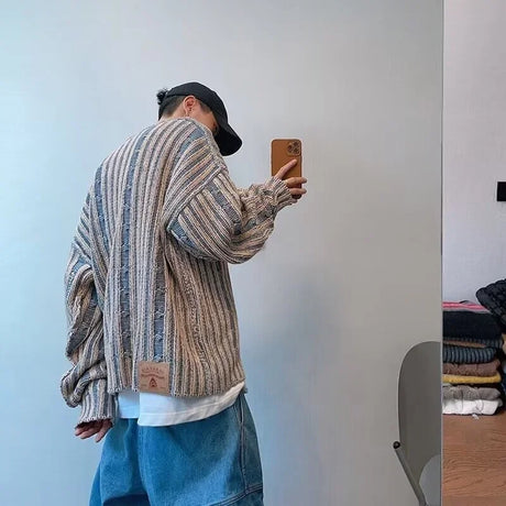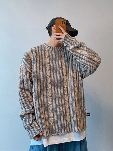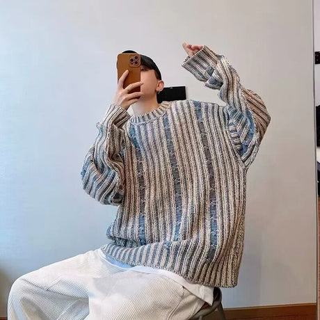 Cozy Striped Knit Sweater for Men - Casual Loose Fit, Color Block Design, Perfect for Fall/Winter