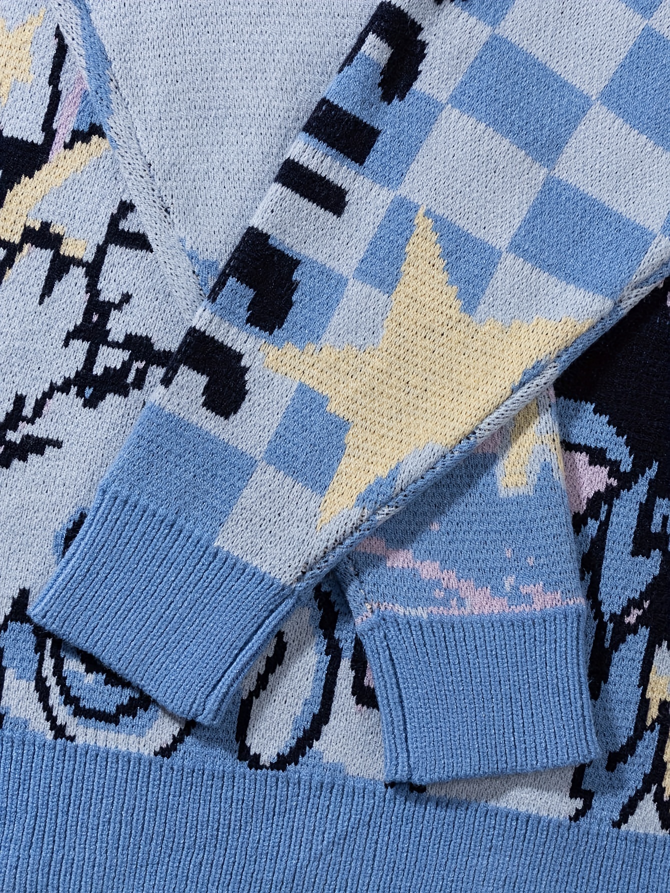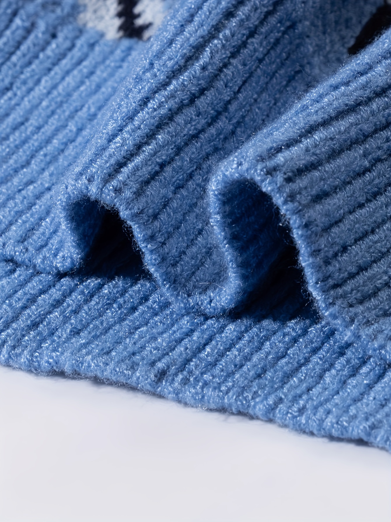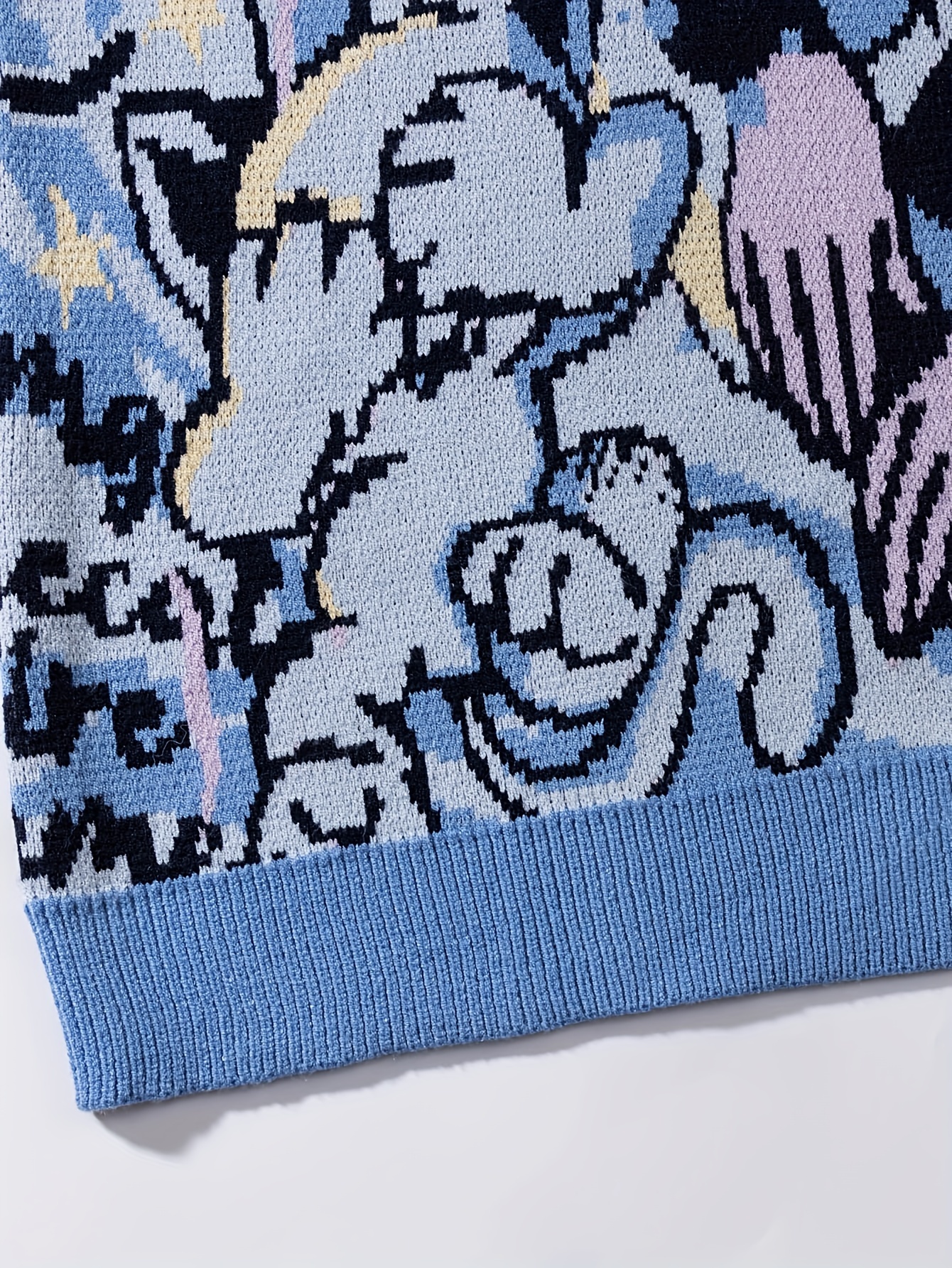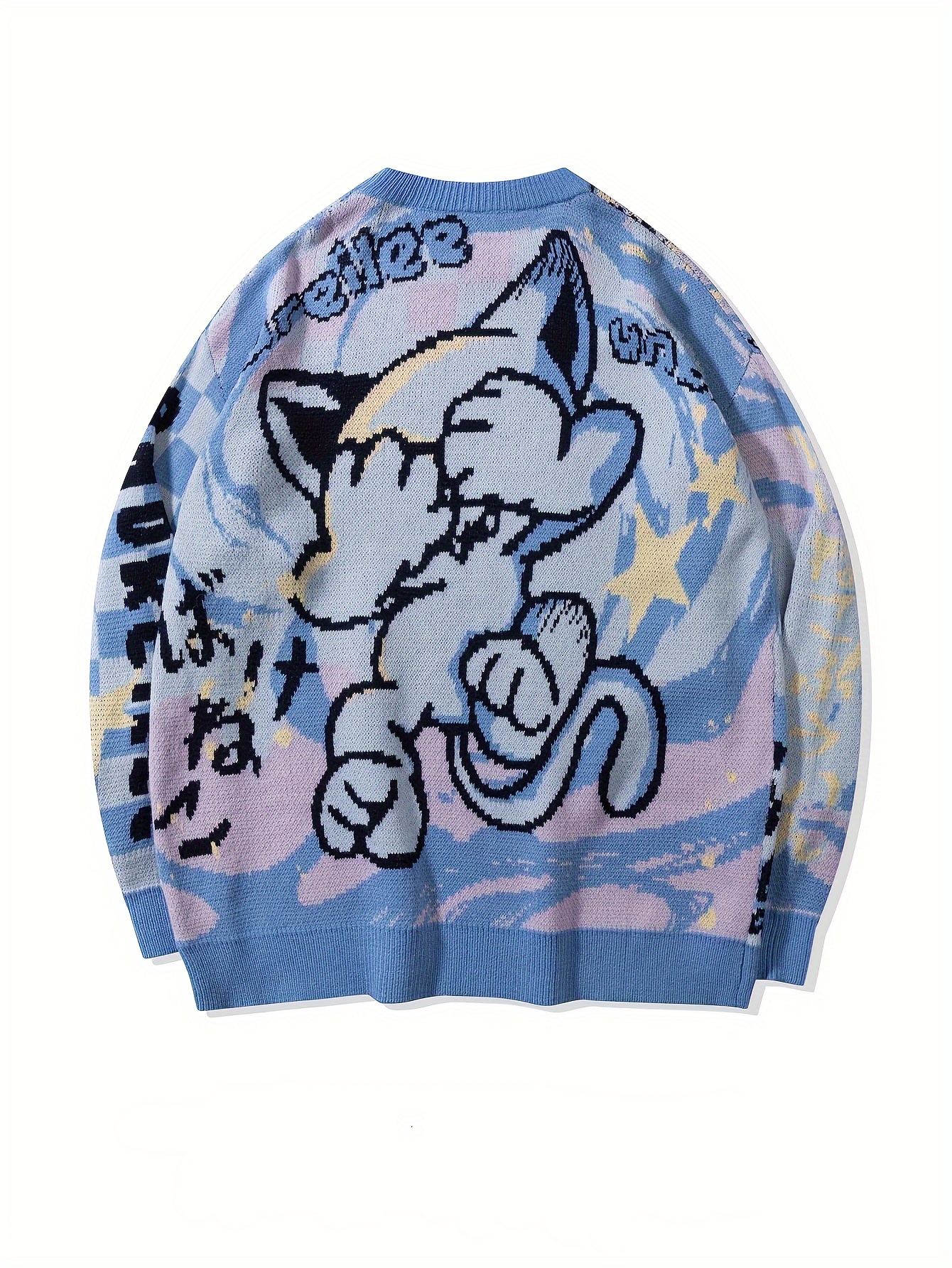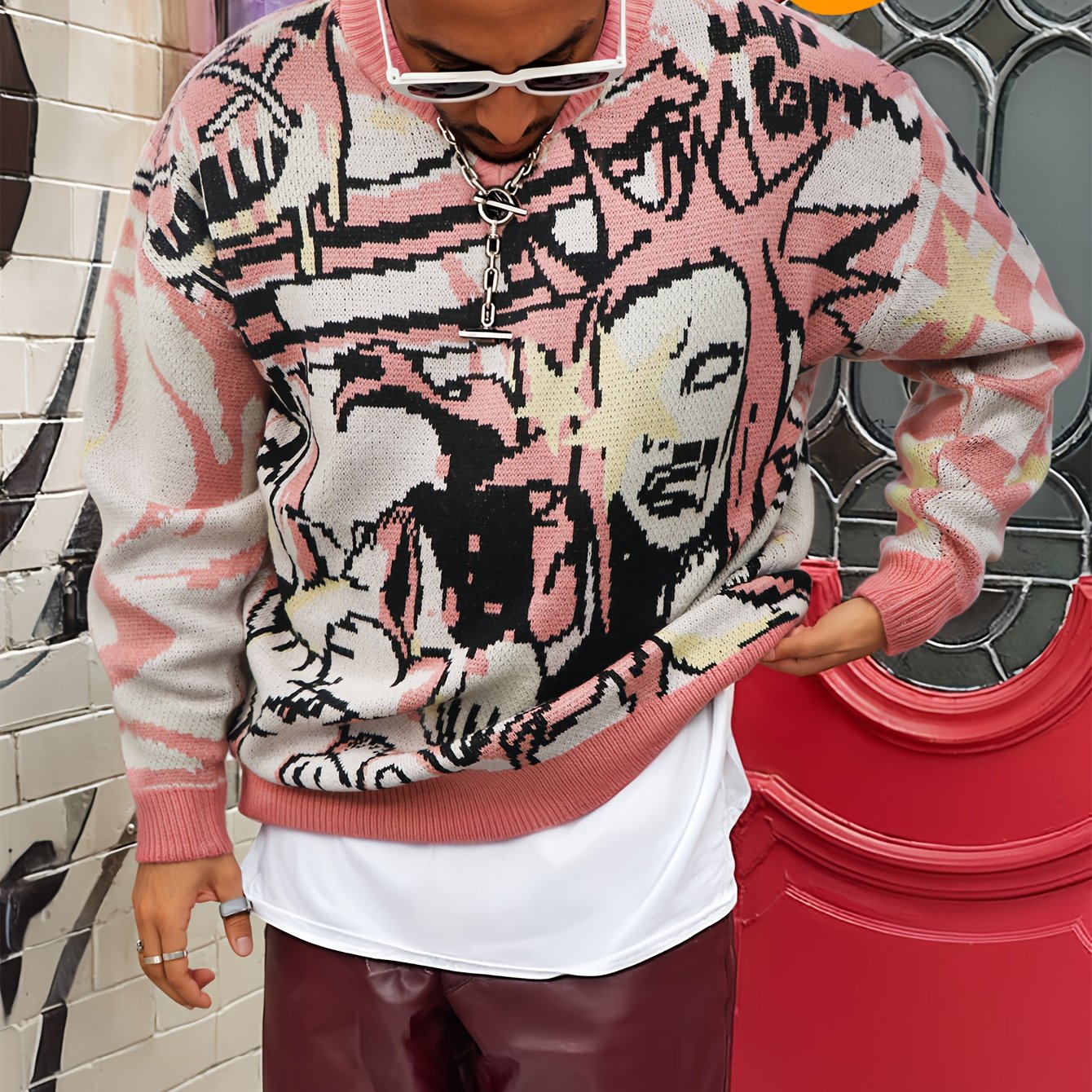 ANDREILEE Street Style Knit Pullover Sweater for Men - Crew Neck, Long Sleeve, Cartoon Pattern, Viscose Blend, Medium Stretch, Regular Fit, Casual Hip-Hop Fall/Winter Knitted Jumper - For Men - Suitable for Fall/Winter - Perf